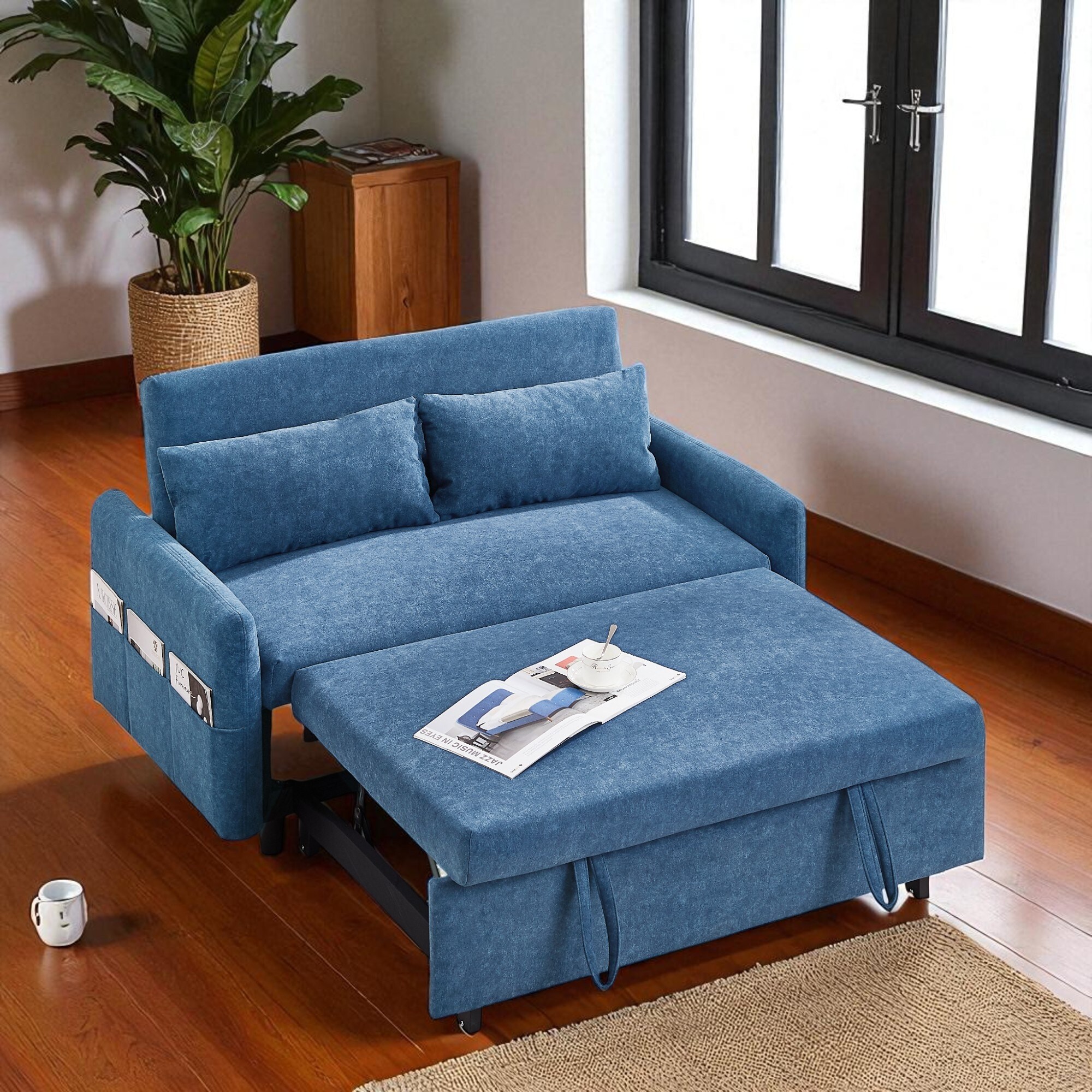 Convertible Pull Out Sofa Bed with Adjustable Backrest, USB Ports and Storage Pockets, Loveseat Sleeper - Microfiber