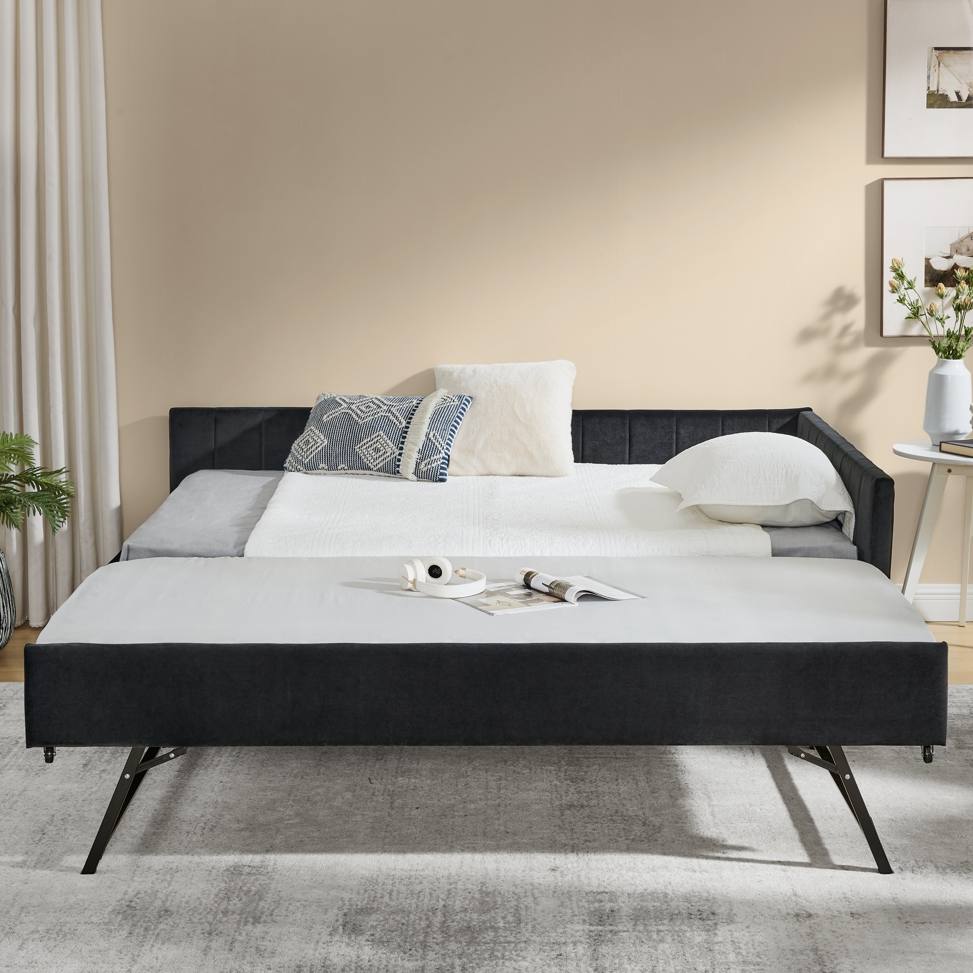 Full Size Daybed With Trundle Upholstered Tufted Sofa Bed, Sofa Bed Frame With Comfortable Backrest And Armrests, Velvet, Black