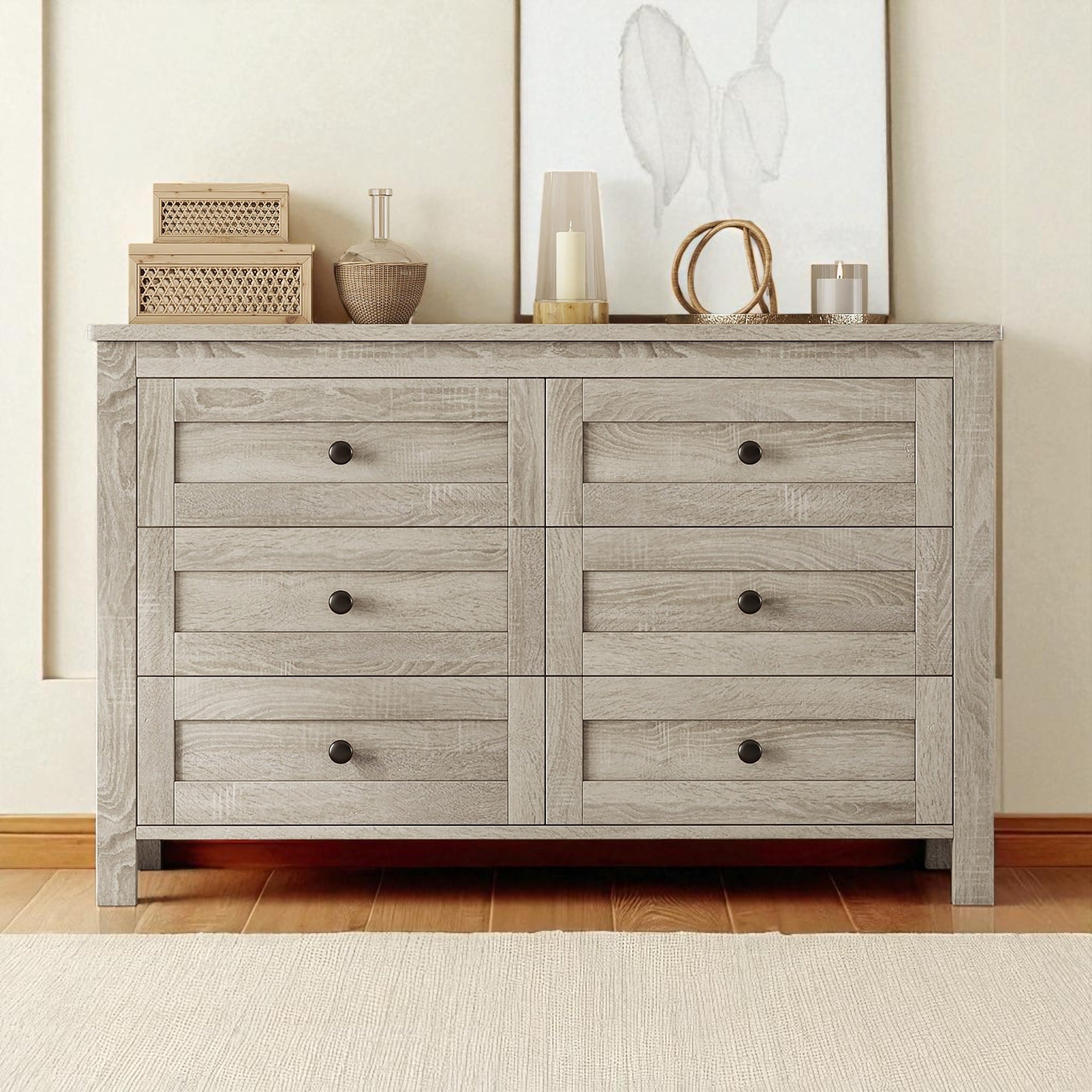 52" Retro Farmhouse 6 Drawer Wooden Dresser, Vintage Storage Cabinet Organizer with Spacious Drawers for Bedroom or Living Room.