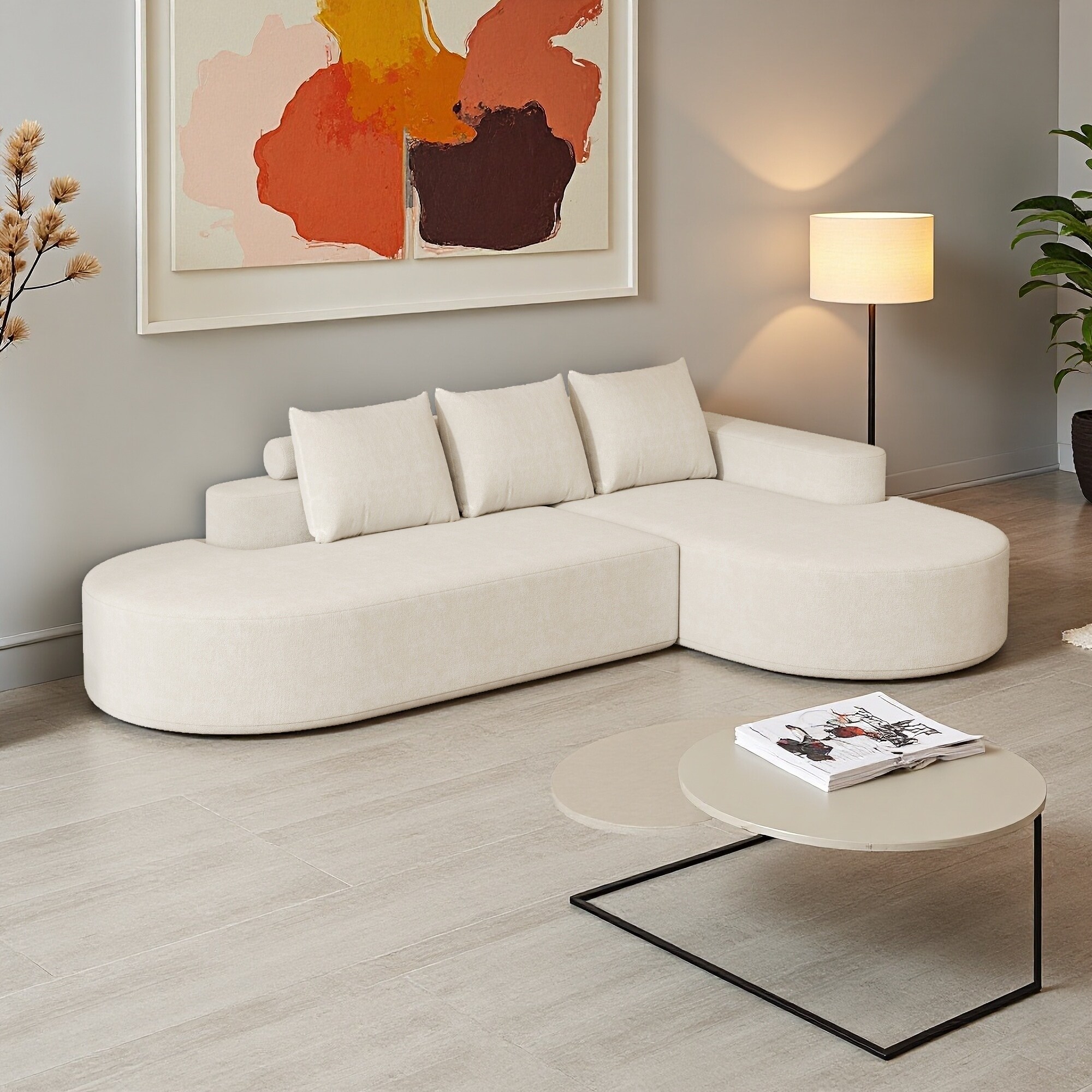 108.5" Chenille L-Shaped Modular Sectional Sofa with Right Facing Chaise 3 Pillows and Curved Design (3-Seater)