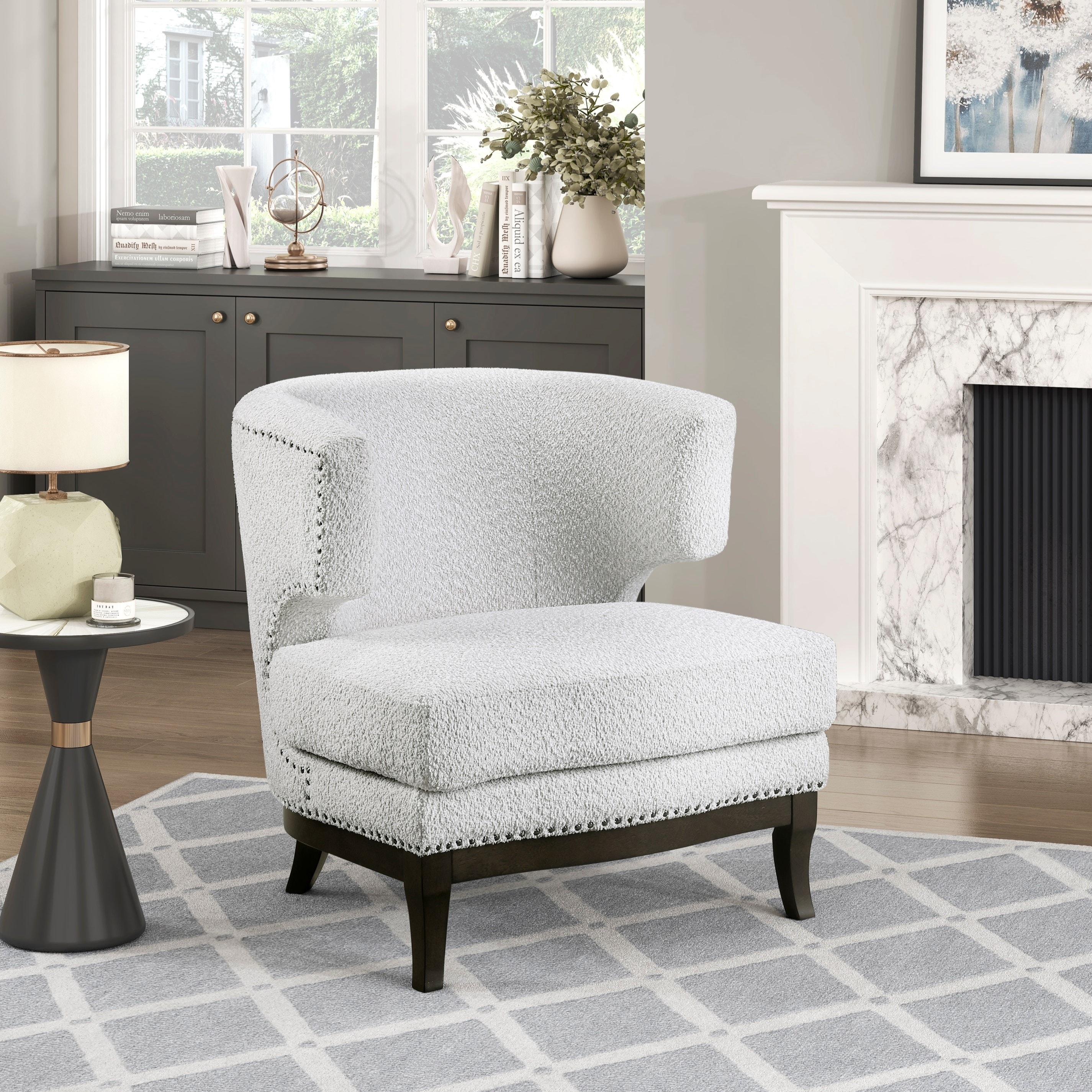 Contemporary Accent Chair Gray Boucle Fabric Upholstered Nailhead Trim Plywood Elegant Style Furniture 1pc Unique Barrel Back