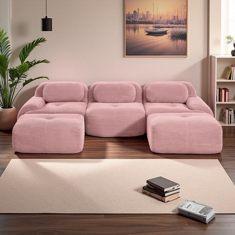 117.3" Corduroy U-Shaped Modular Sofa with No Assembly Required, Anti-Slip Design and Extra-Wide Curved Armrests