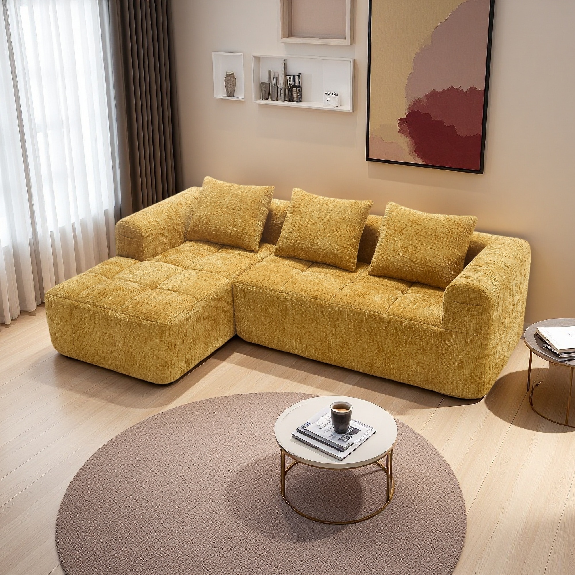 Modular Corduroy Corner Sectional Sofa Couch Set with Tufted Cushion