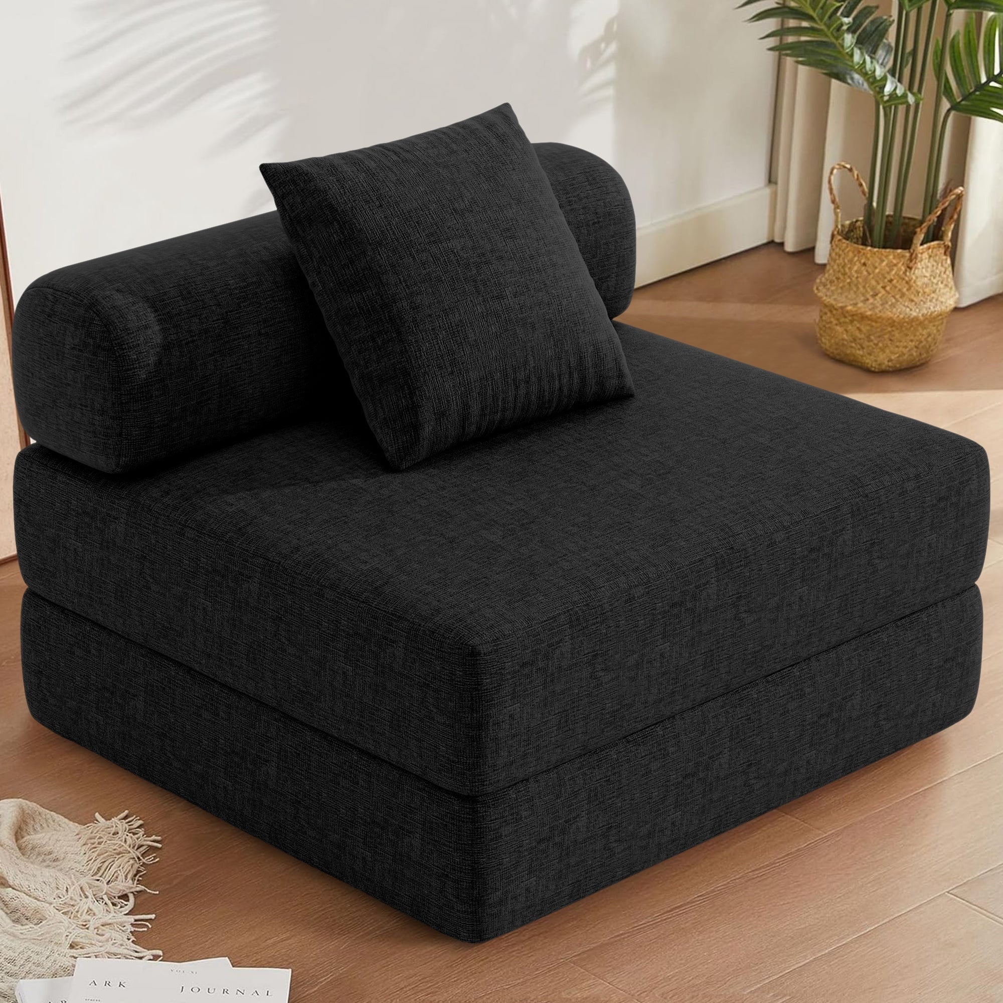 4-in-1 Folding Sofa Bed with Fixed-Shape Frame, DIY Combination Modular Sofa Convertible Chenille Couch for Living Room