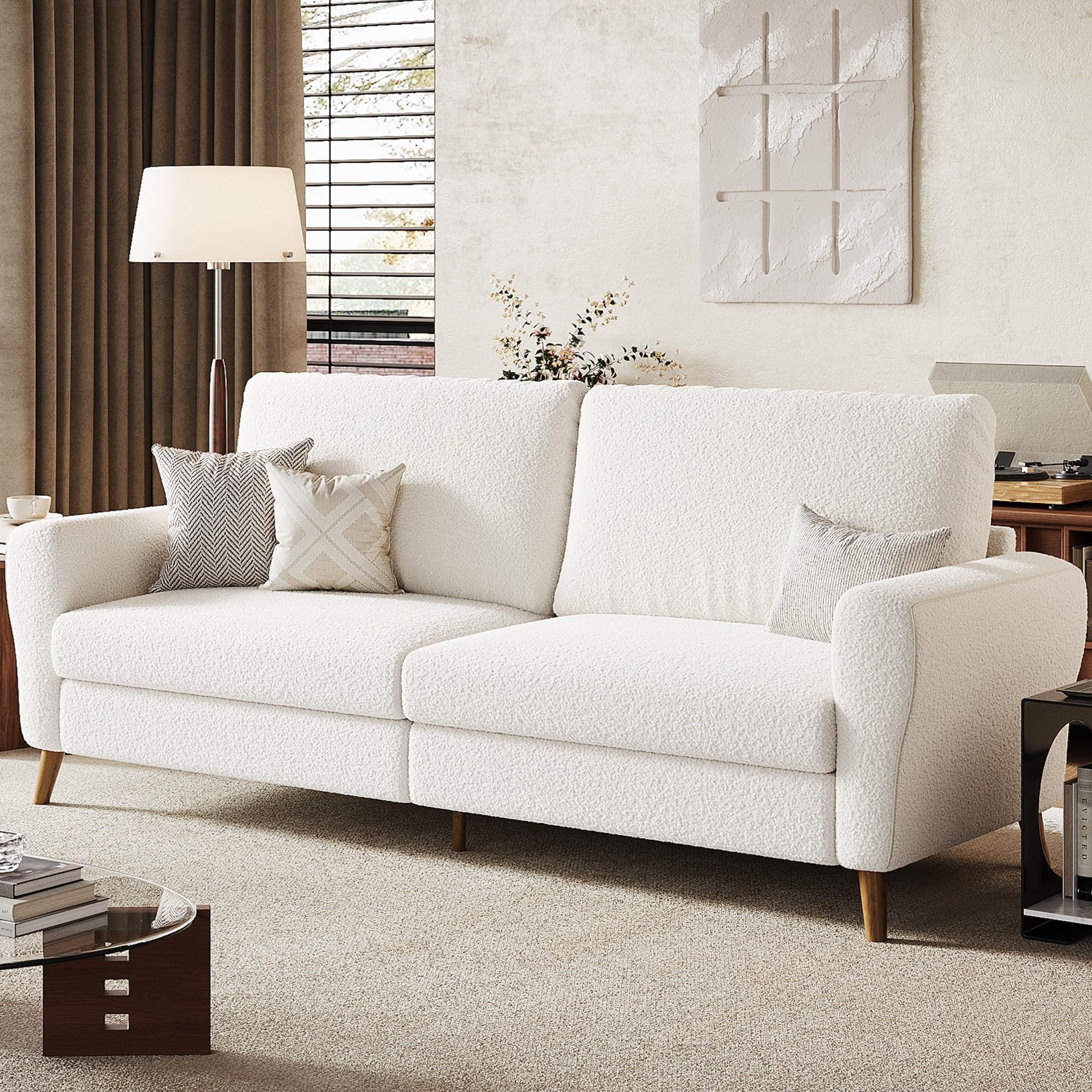 84" 3-Seater Modern Boucle Sofa, Deep Seats, Wide Armrests, Wood Legs for Living Room