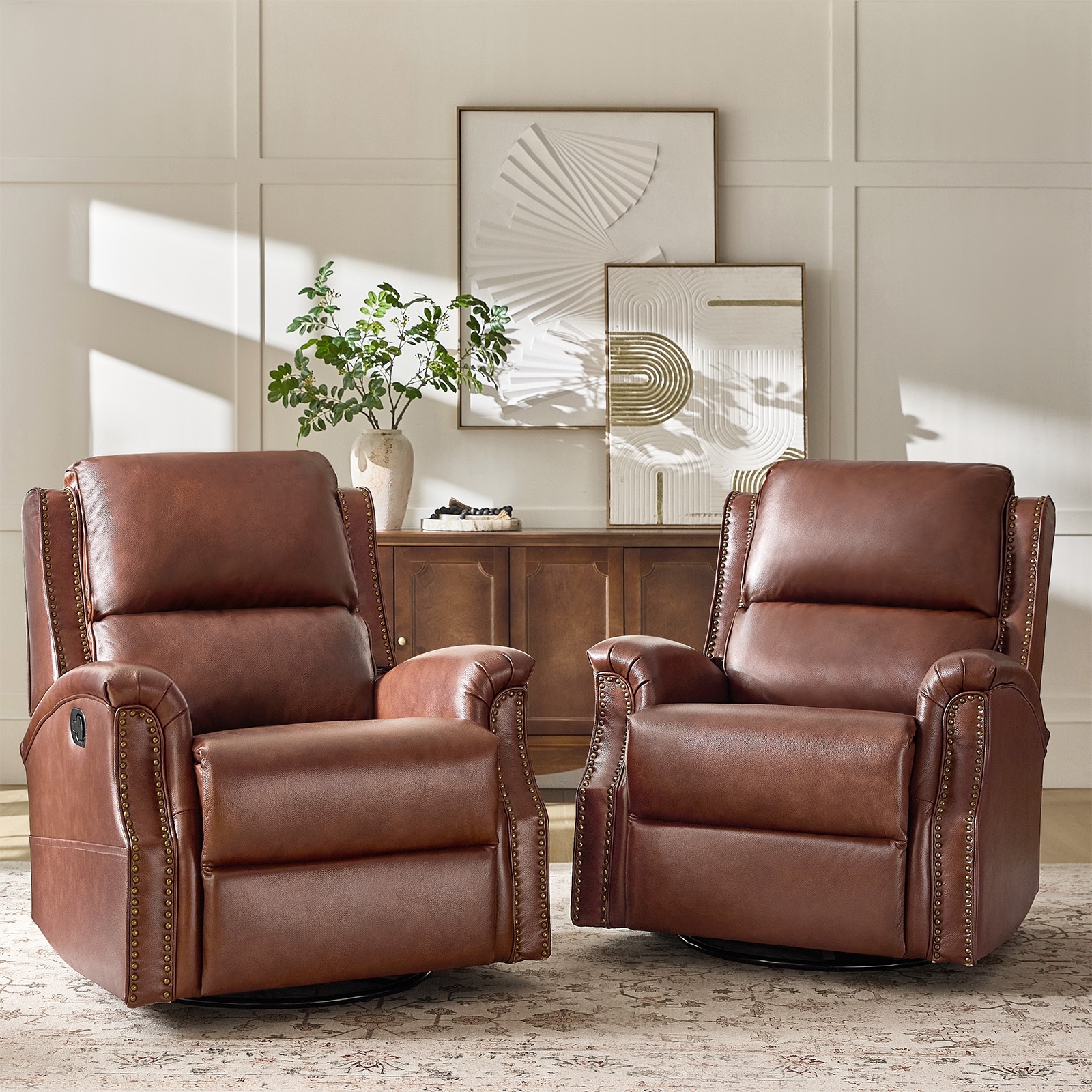 Felisa Traditional Genuine Leather Glider Chair Set of 2 By HULALA HOME