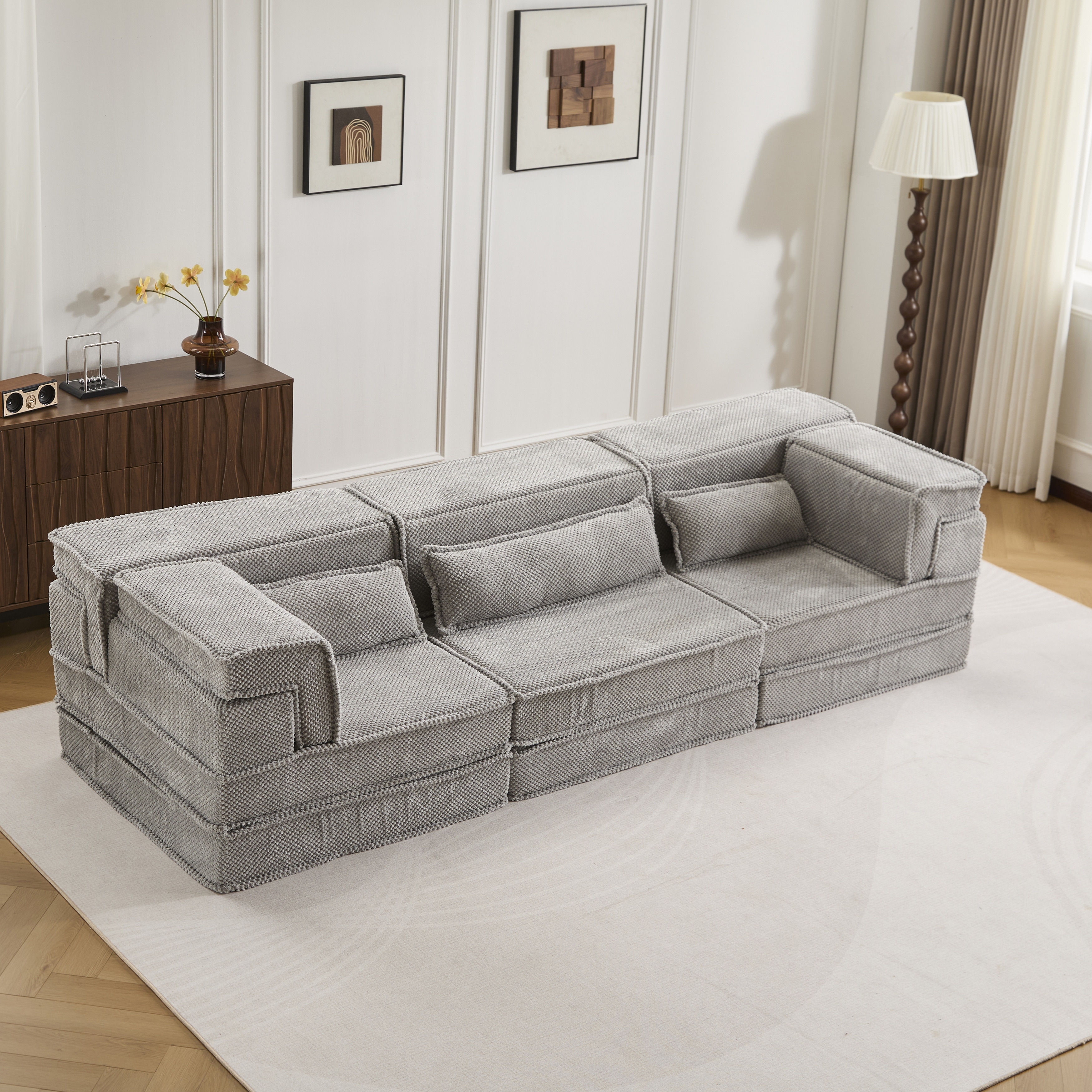 Convertible Floor Sofa Bed,DIY Boneless Modular Sectional Sofa,No Assembly,Circle fleece fabric,3 Seater with 3 Pillows