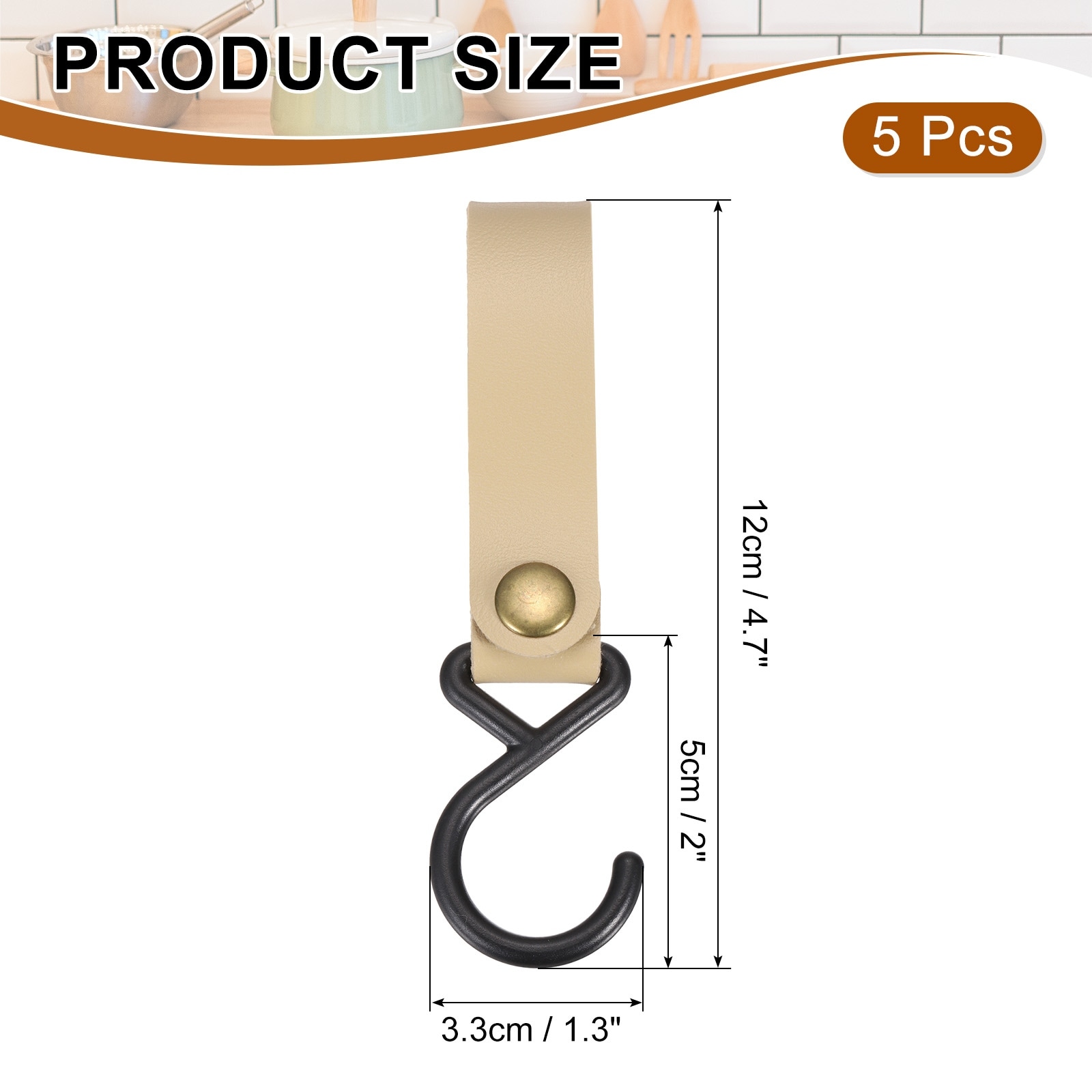 PU Leather Hooks, Leather Straps with Hooks, S-Shape Hooks for Outdoor Camping Hanging Pots Pans Utensils - 20.5cm