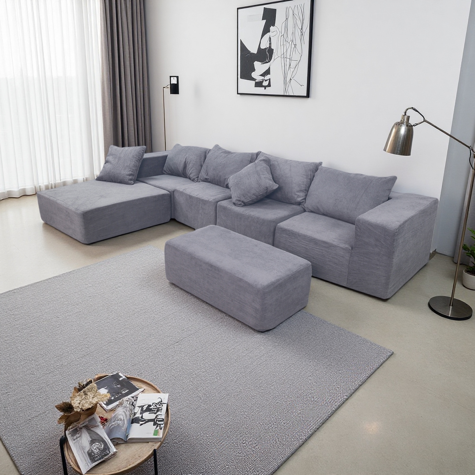 Ergonomic Lounge Modular Couch Corduroy Sectional Sofa with Deep Seat Ottoman Chaise and High-Rebound Thick Cushions