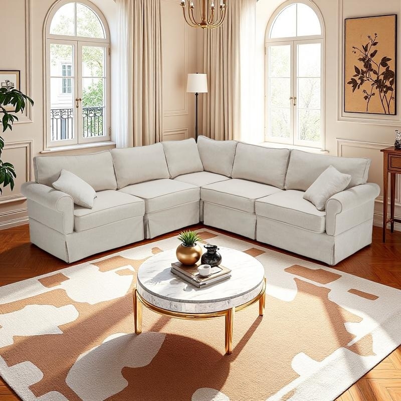 94" Linen L-Shaped 5-Seater Sectional Sofa with Reversible Design and Rolled Arms