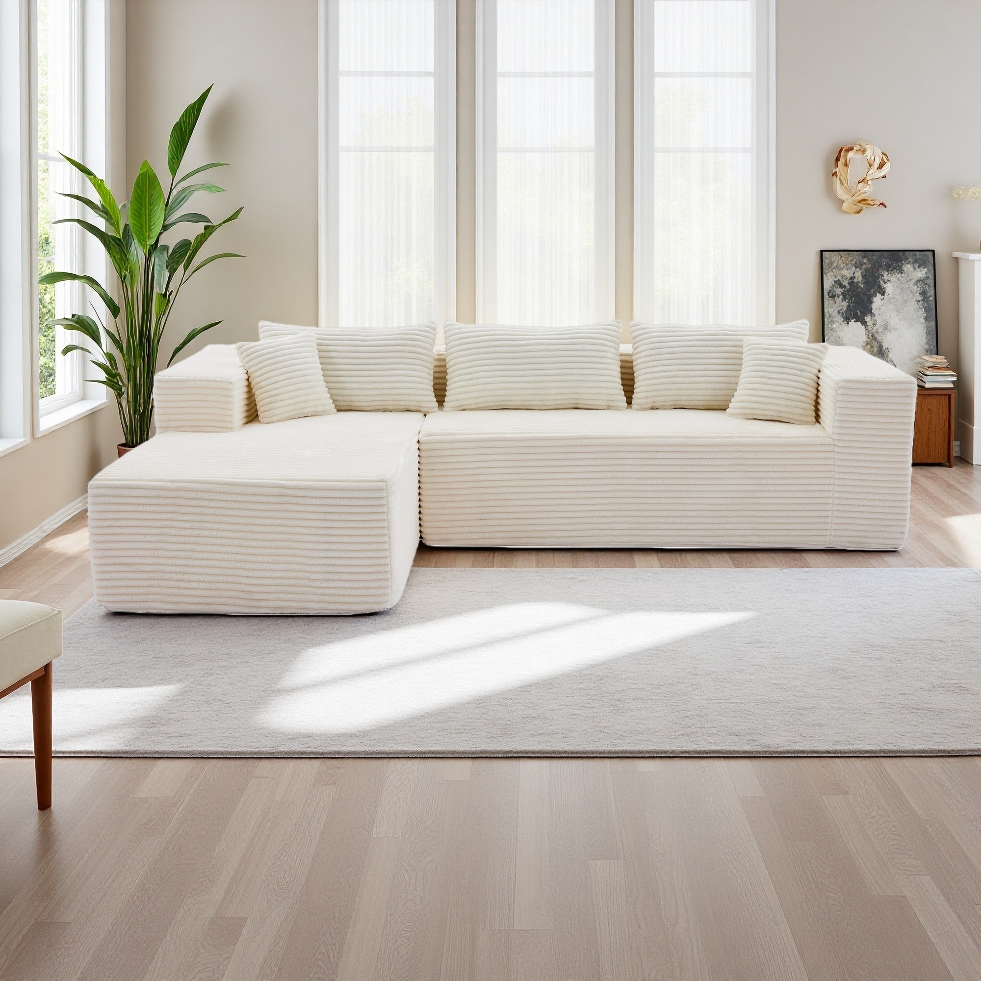 106.3" Corduroy L-Shaped Modular Cloud Sofa with Deep Seat and Chaise