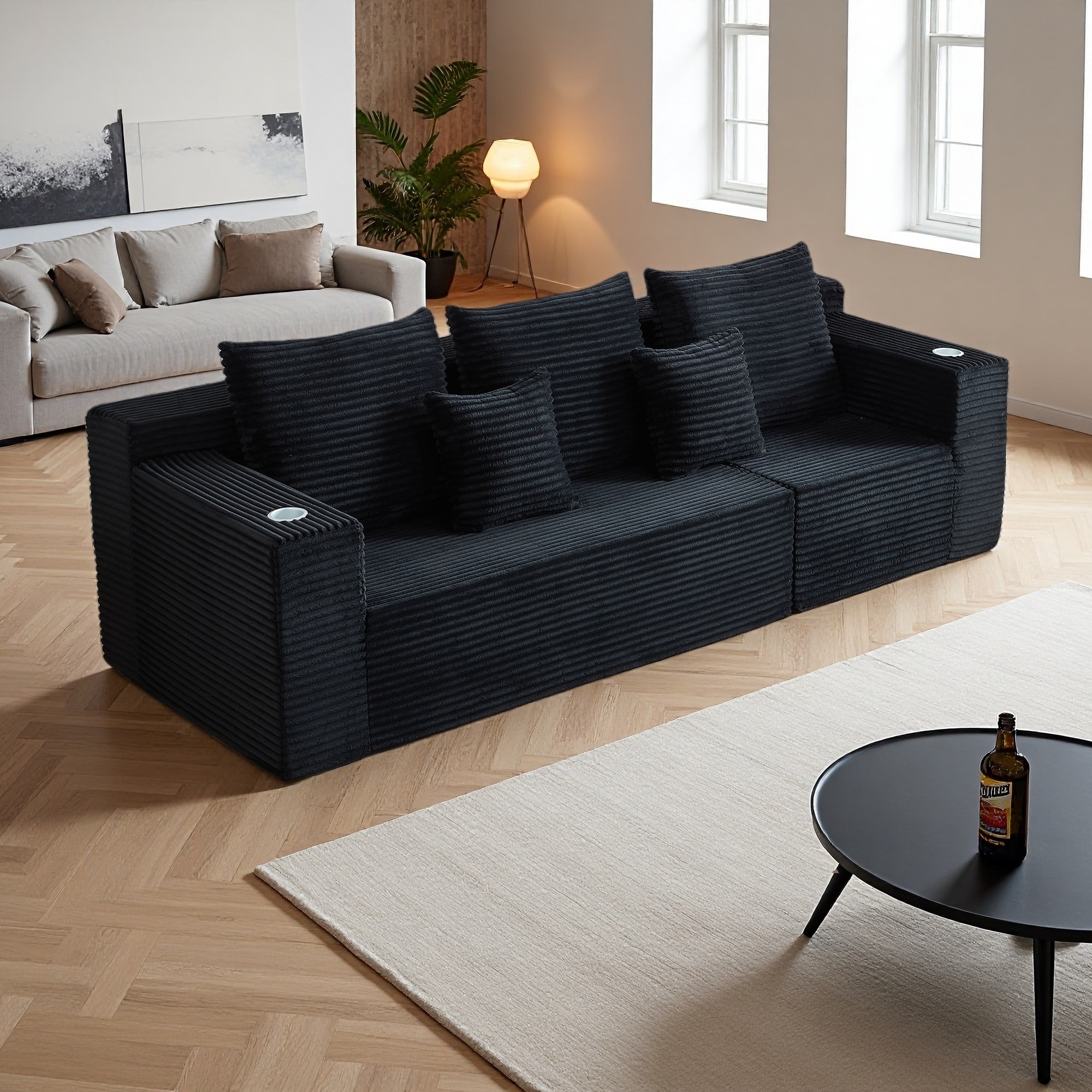 Corduroy Fabric Modular Cloud Sofa with Cup Holders and No Assembly Required (3-Seat)