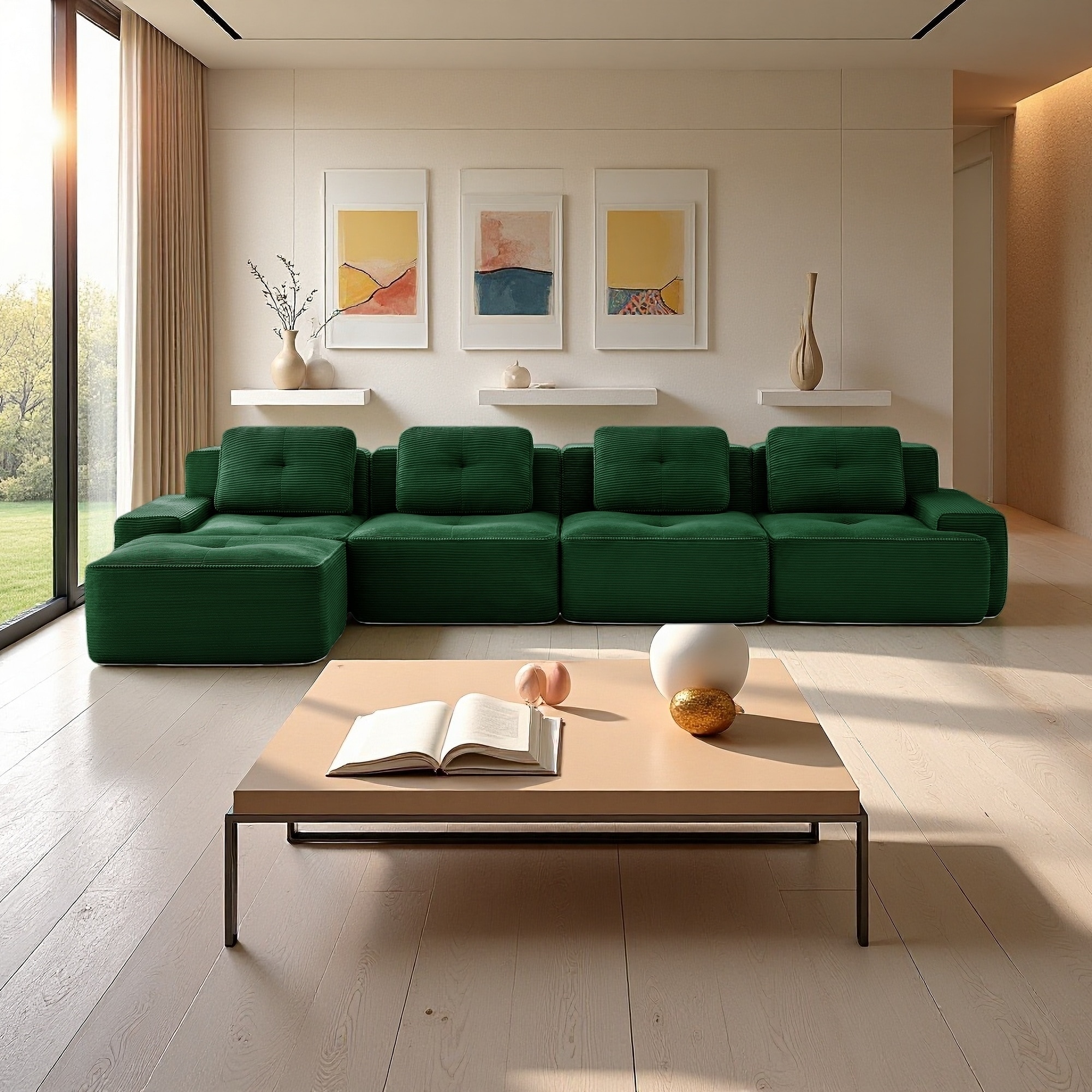 152.8" Corduroy L-Shaped Modular Sectional Sofa with Deep Seat and Movable Ottoman