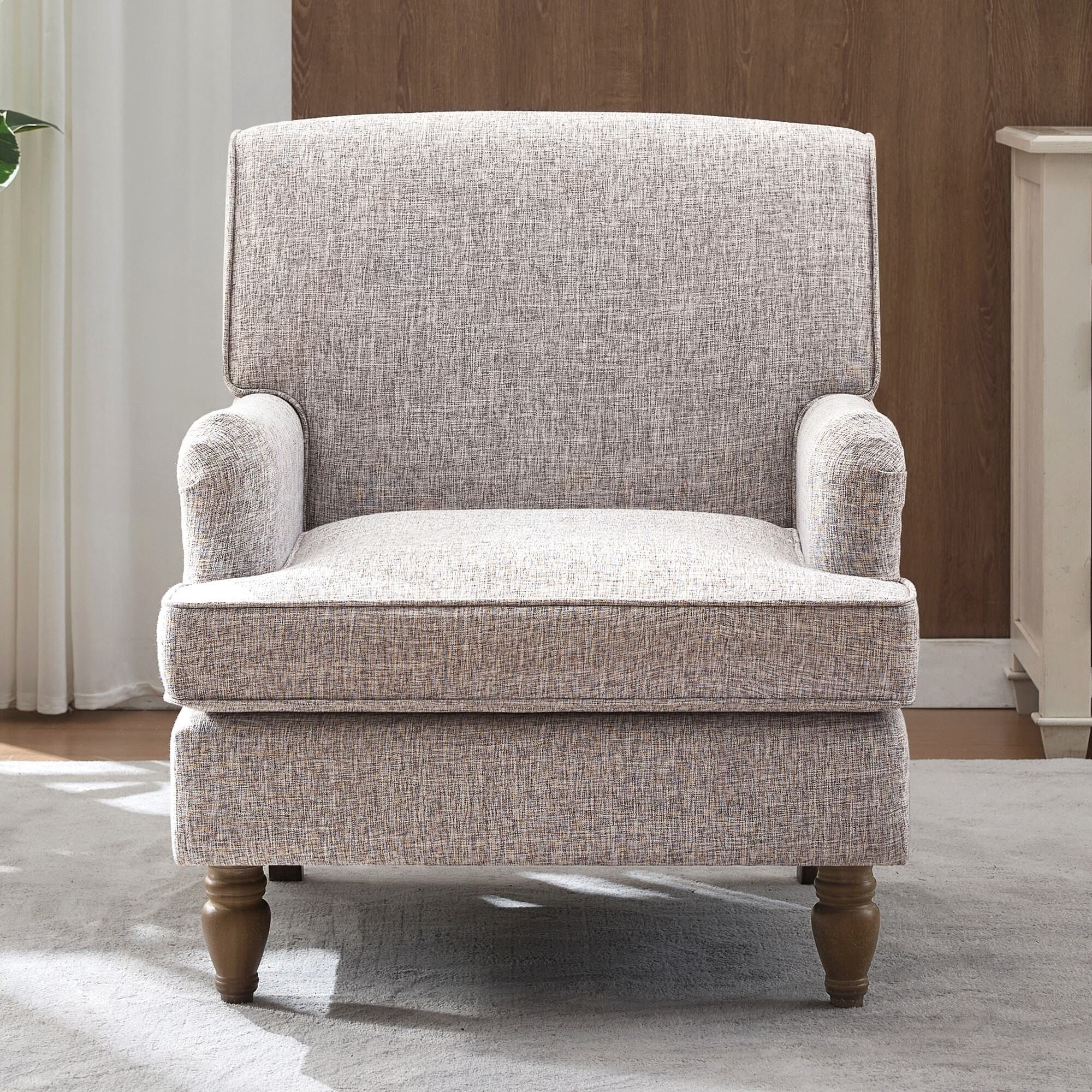 Vintage Upholstered Linen Fabric Armchair with Antique Solid Wood Legs for Living Room and Bedroom