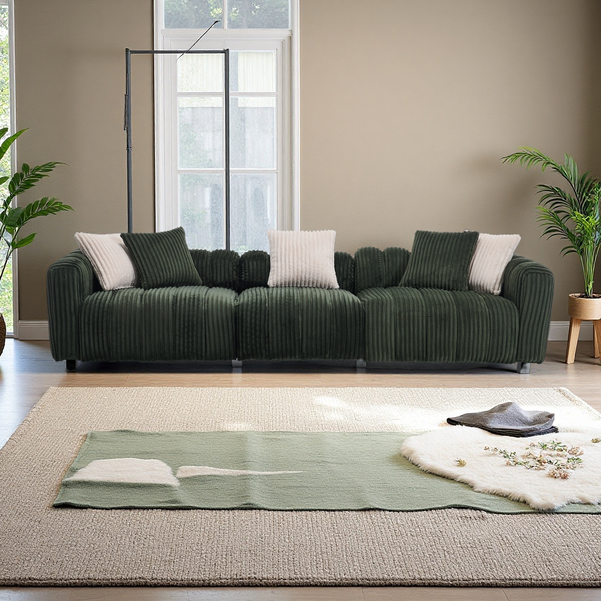 Ergonomic 3-Seater Corduroy Sofa Set with Throw Pillows
