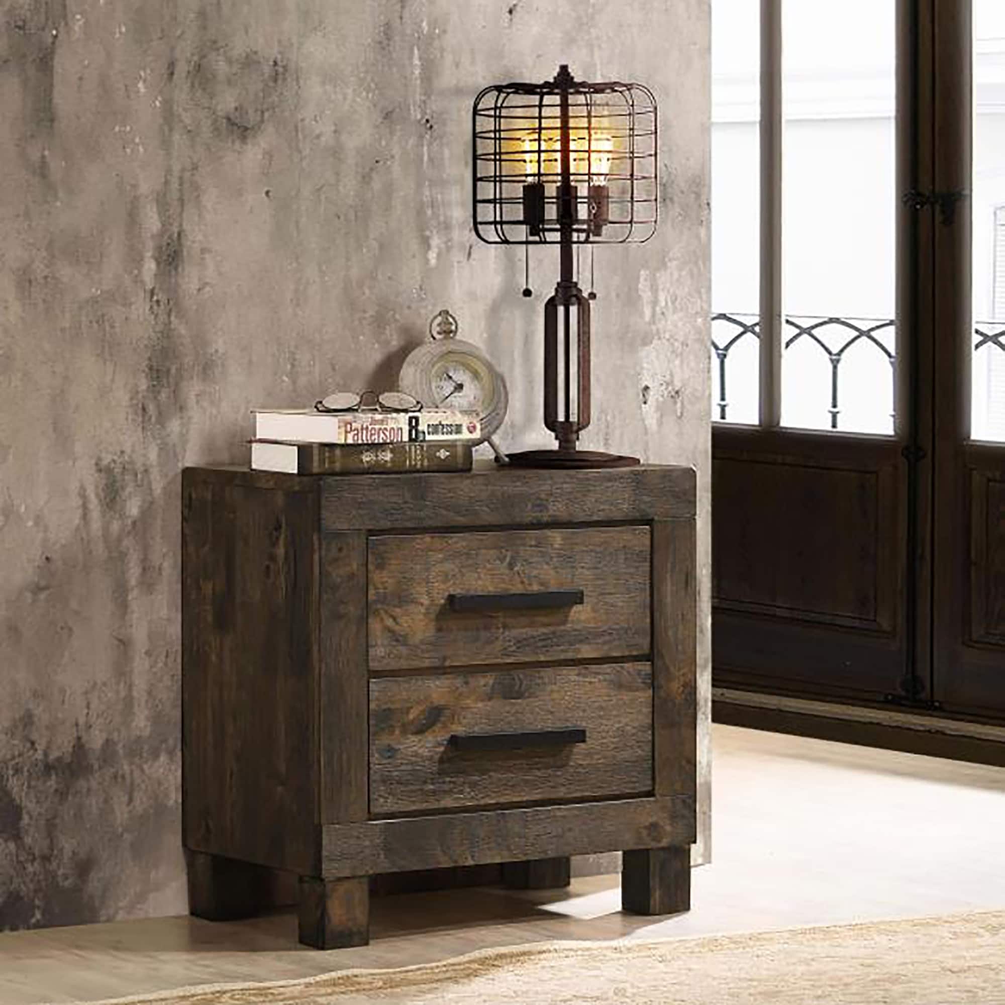 Rustic Golden Brown 2-Drawer Nightstand with Wooden Handles and Thick Block Feet