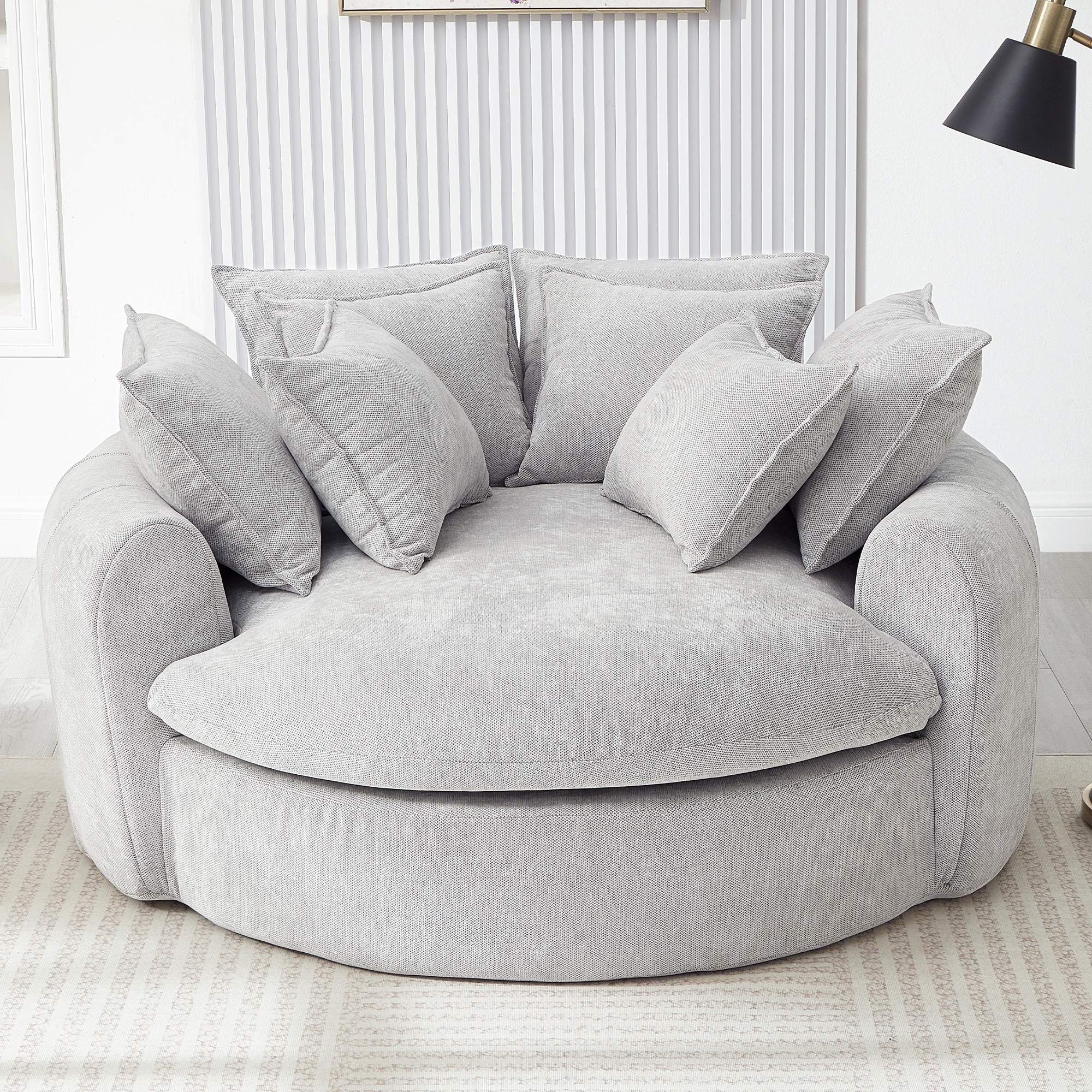 Roomfitters Oversized Round Chaise Sofa 59.8" Upholstered Loveseat with 8 Pillows, Accent Chair for Living Room