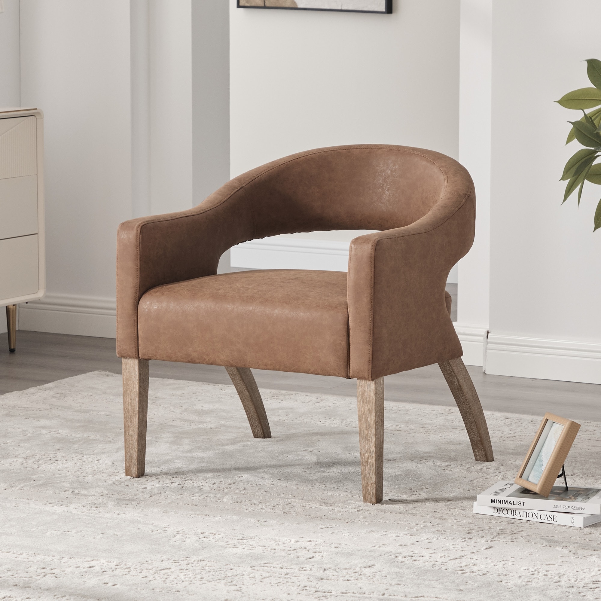 26 Inch Wide PU Arm Chair with Open Back & Rubberwood Legs