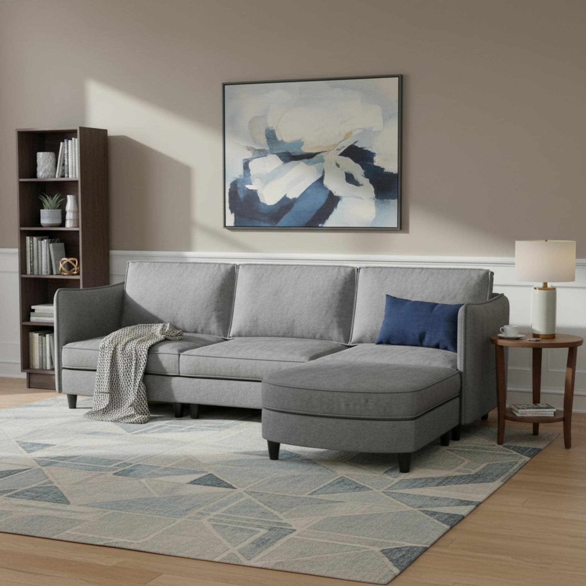 Homy Casa 4-Seater Fabric Sectional Sofa with Ottoman, Reversible Chaise, Solid Wood Frame for Living Room Apartment