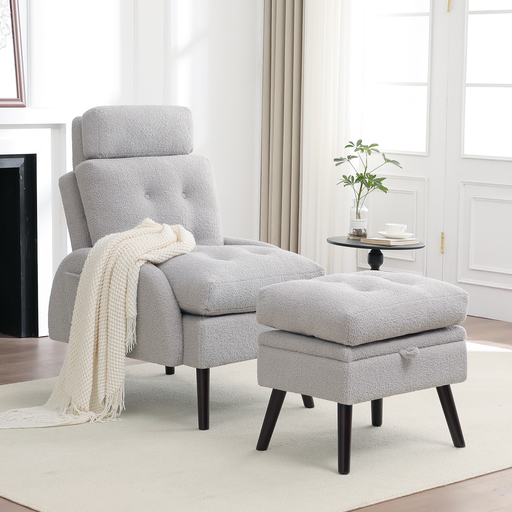 HOMYKA Upholstered Chaise Lounge Chair with Adjustable Backrest Storage Ottoman