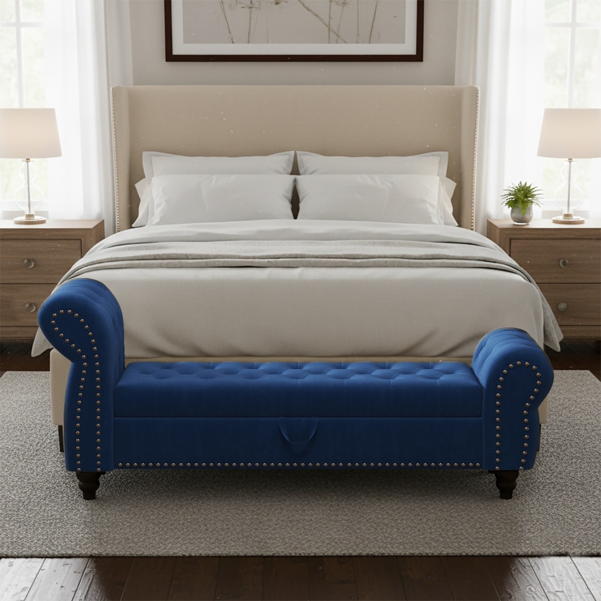 Elegant Stylish Velvet Upholstered Storage Bench with Solid Rubberwood Legs