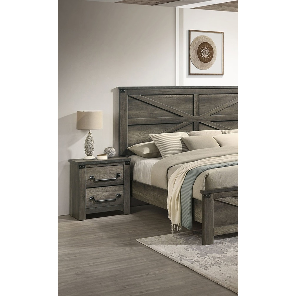 farmhouse rustic gray bedside table bedroom 1pc nightstand english front antique brass color drop handles