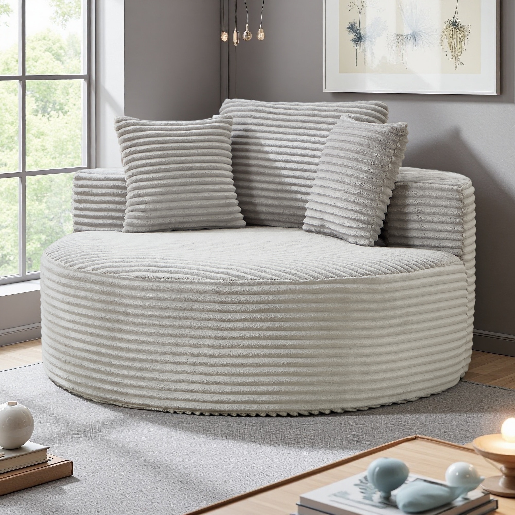 55.9" Round Sofa Bed with Memory Foam, Breathable Fabric, Modular Sectional Couch for Living Room, Couch with Three Pillows