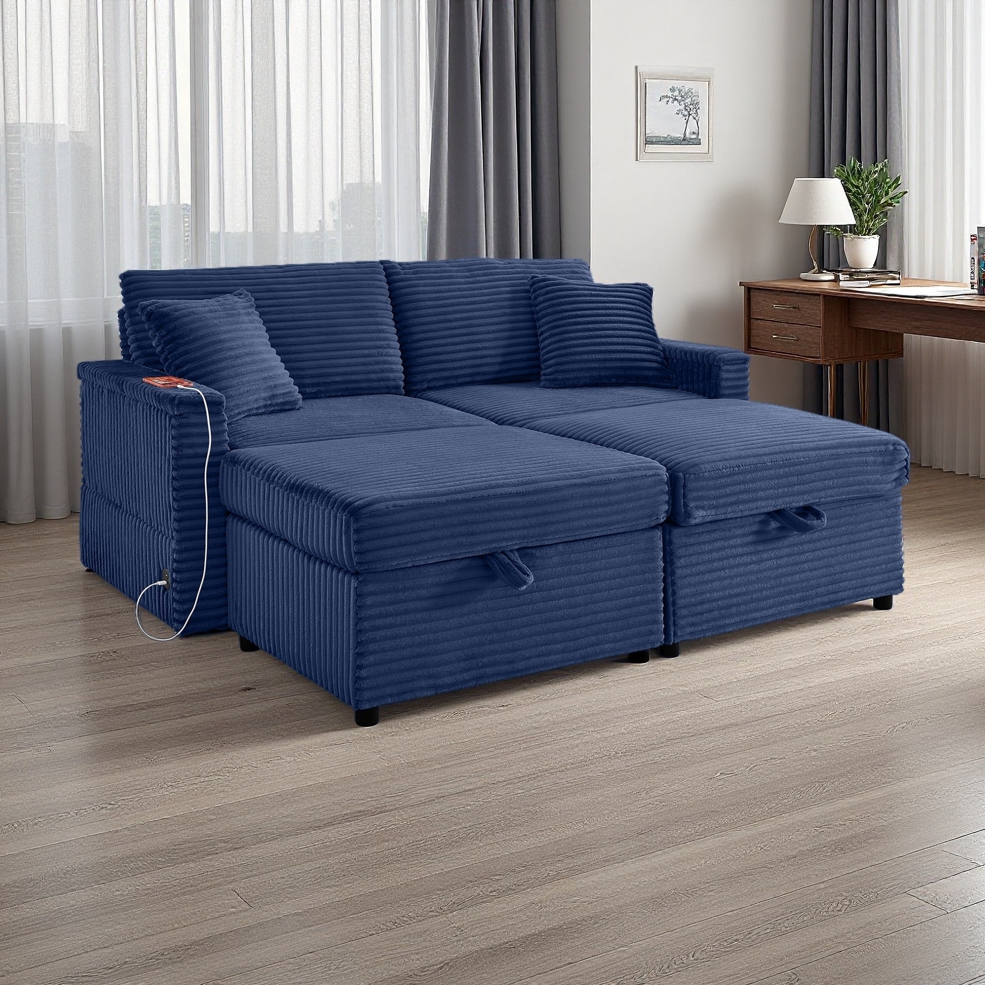 69" Oversized Corduroy Lazy Sofa, Multifunctional Storage Ottoman, Chaise Lounge with Double Ottomans, Table Board & USB Port