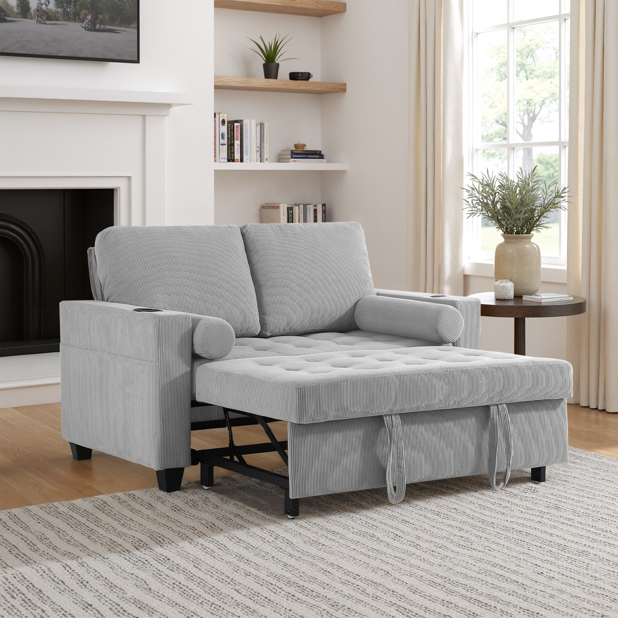 Corduroy Pull-Out Chair Bed Adjustable Recline Convertible Sleeper Sofa