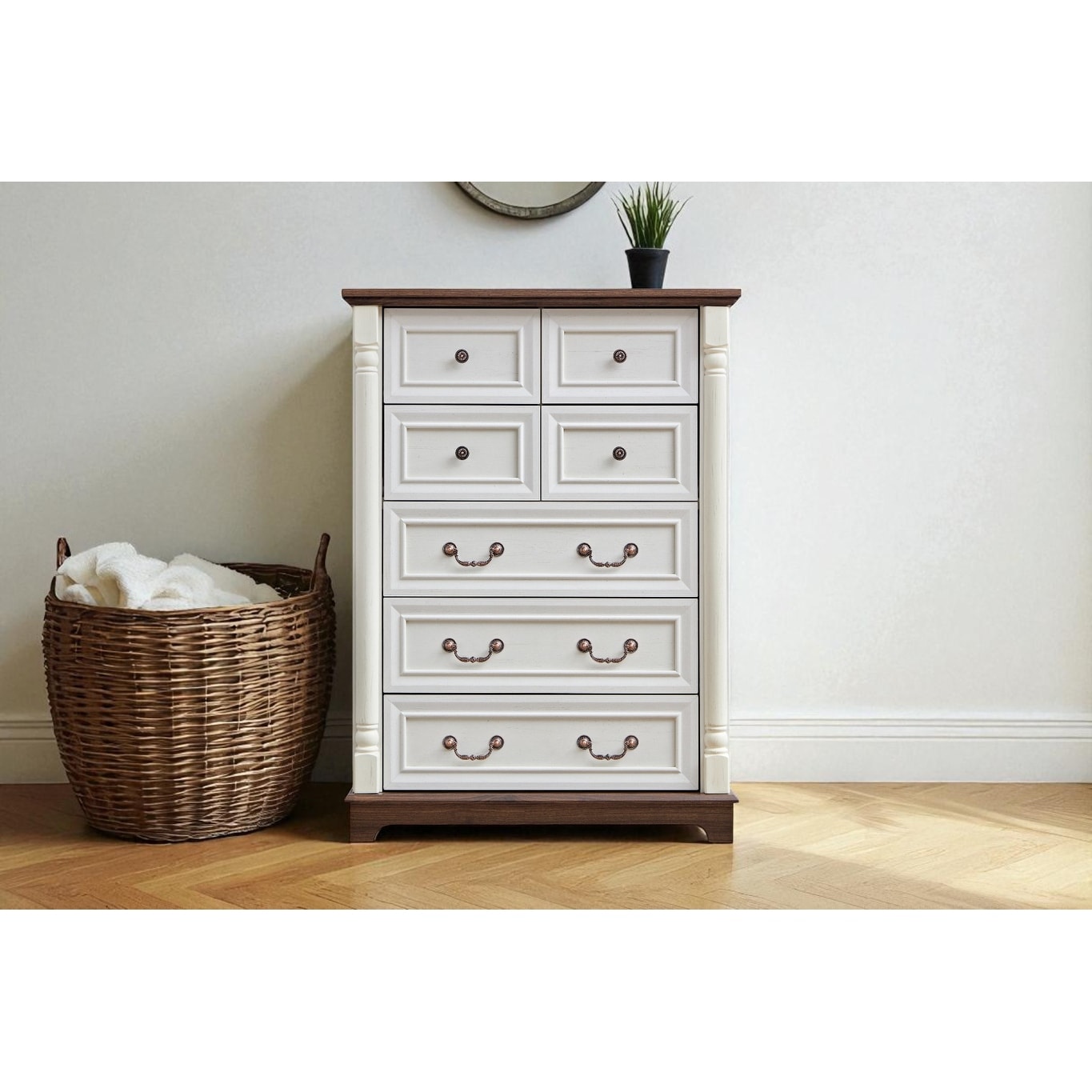 7 Drawer Dresser, Rustic Wooden Chest of Drawers with Two-Tone Finish, Storage Organizer for Bedroom or Living Room.