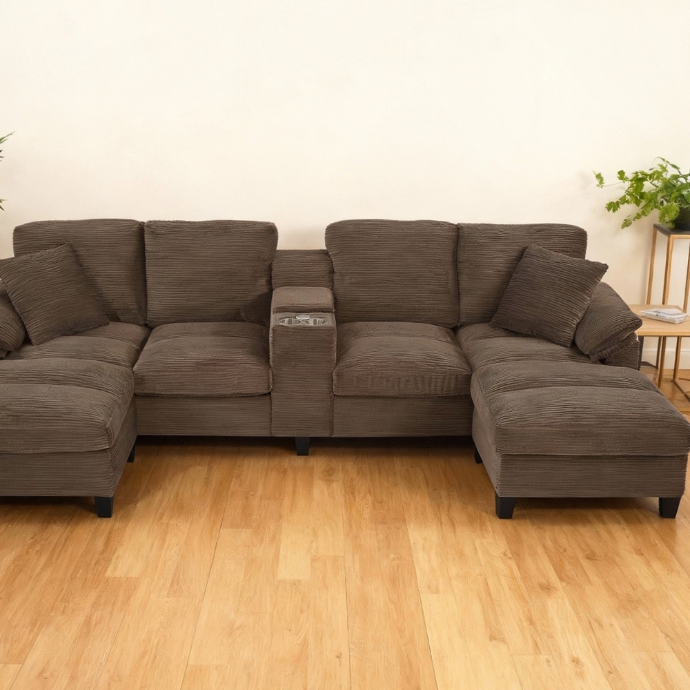 Modern U-shaped Sofa Corduroy Upholstered with Storage Ottomans