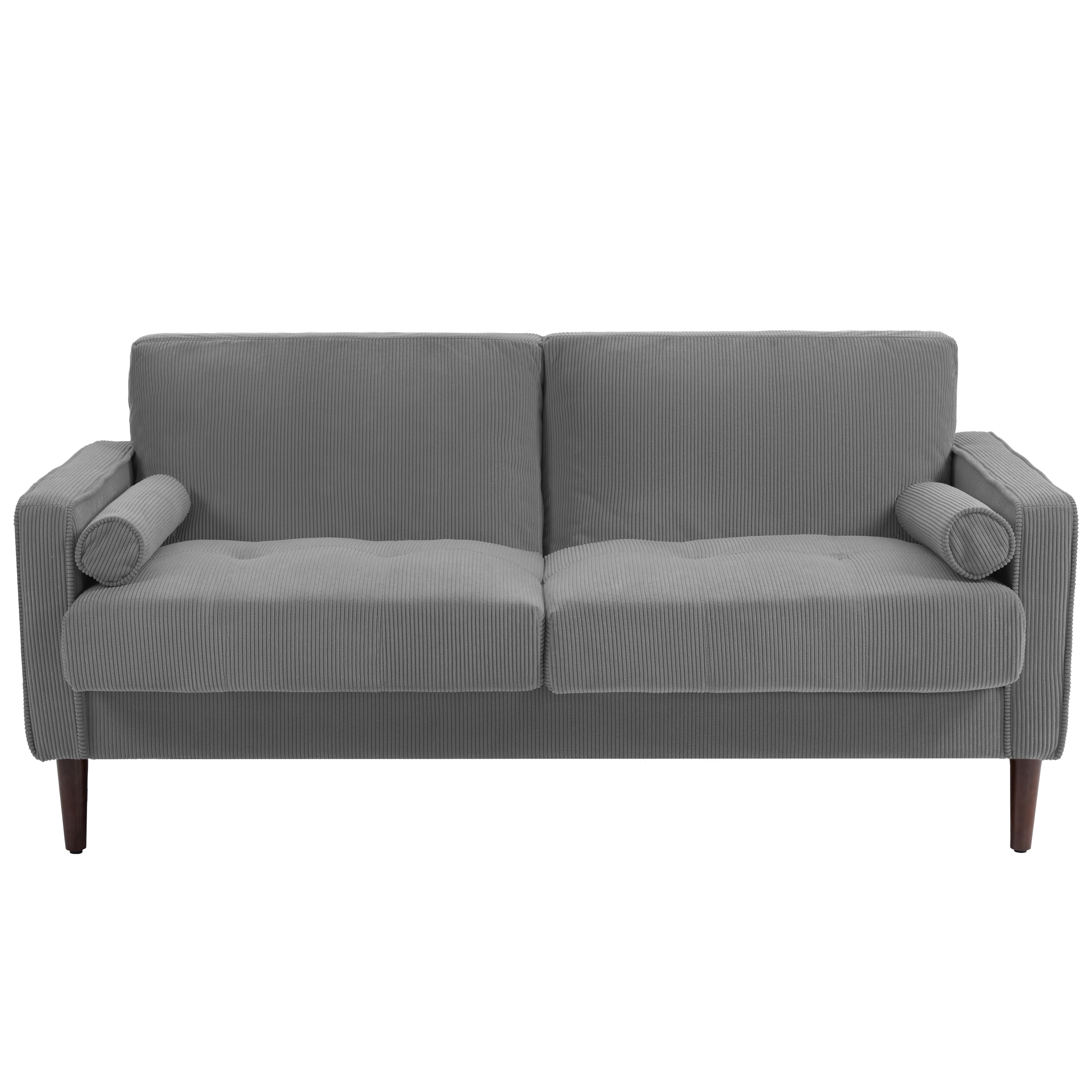 Modern Corduroy 2 Seater Sofa with Bolster Pillows