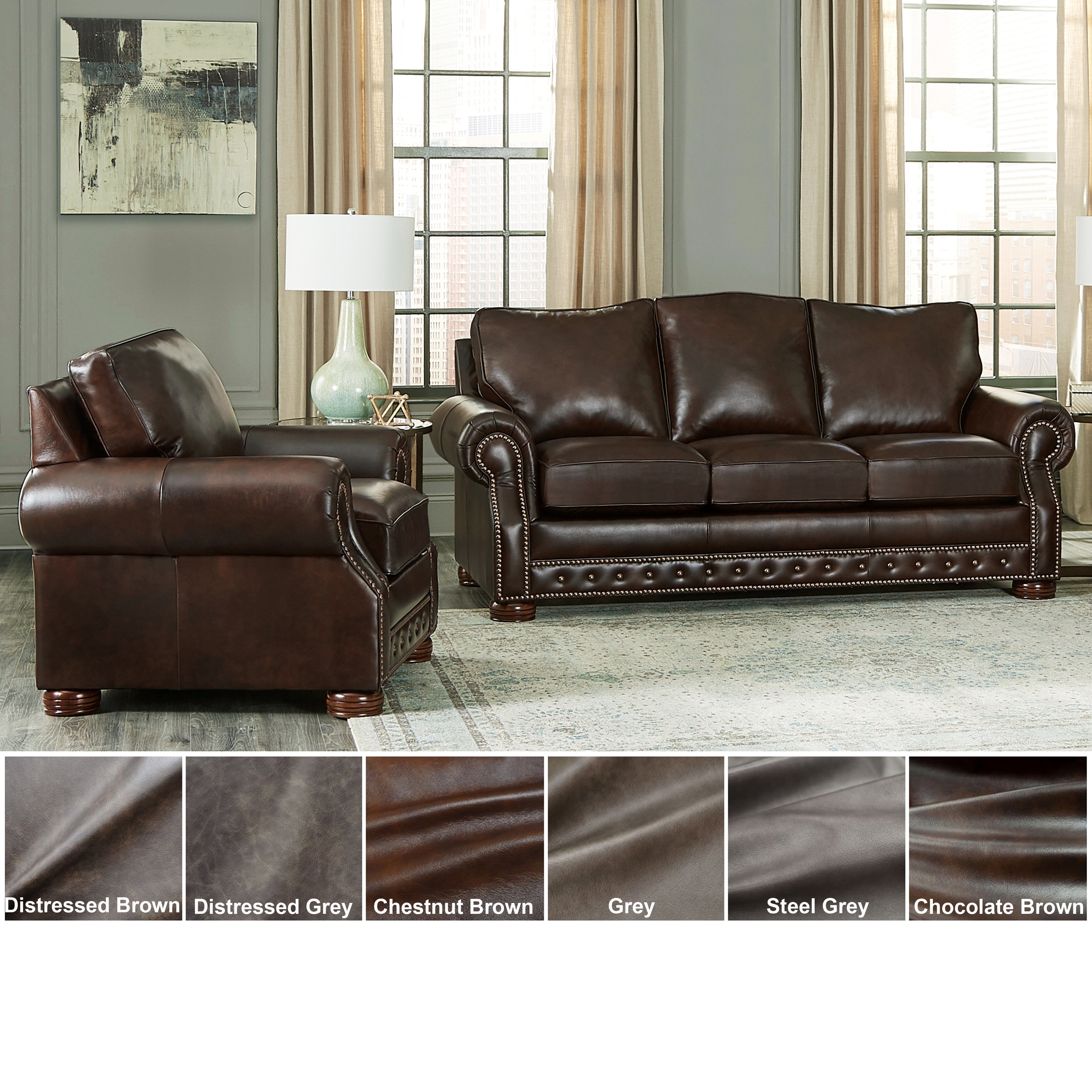 Made in USA Porto Top Grain Leather Sofa and Chair Set