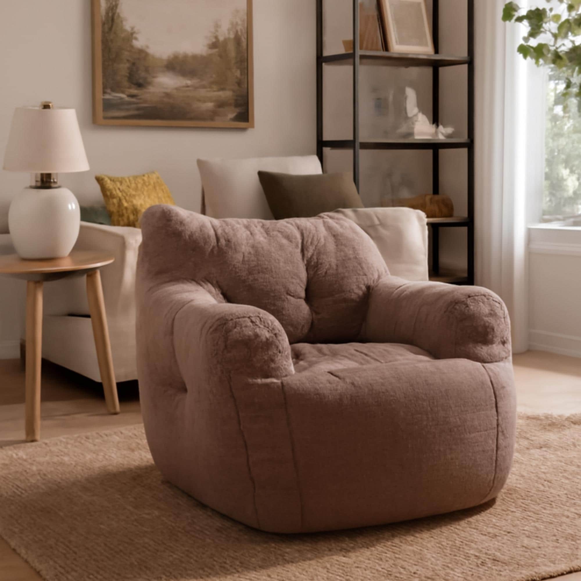 Homy Casa Soft Memory Foam Bean Bag Chair with Teddy Velvet Cover, Cozy Floor Lounger for Living Room and Bedroom, No Assembly