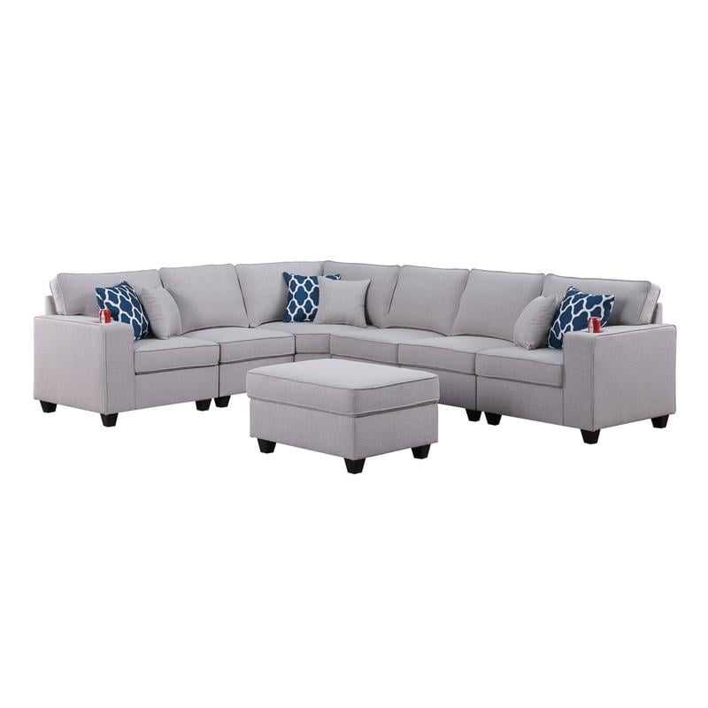 Cooper Linen 7Pc Reversible L-Shape Sectional w/ Ottoman & Cupholder