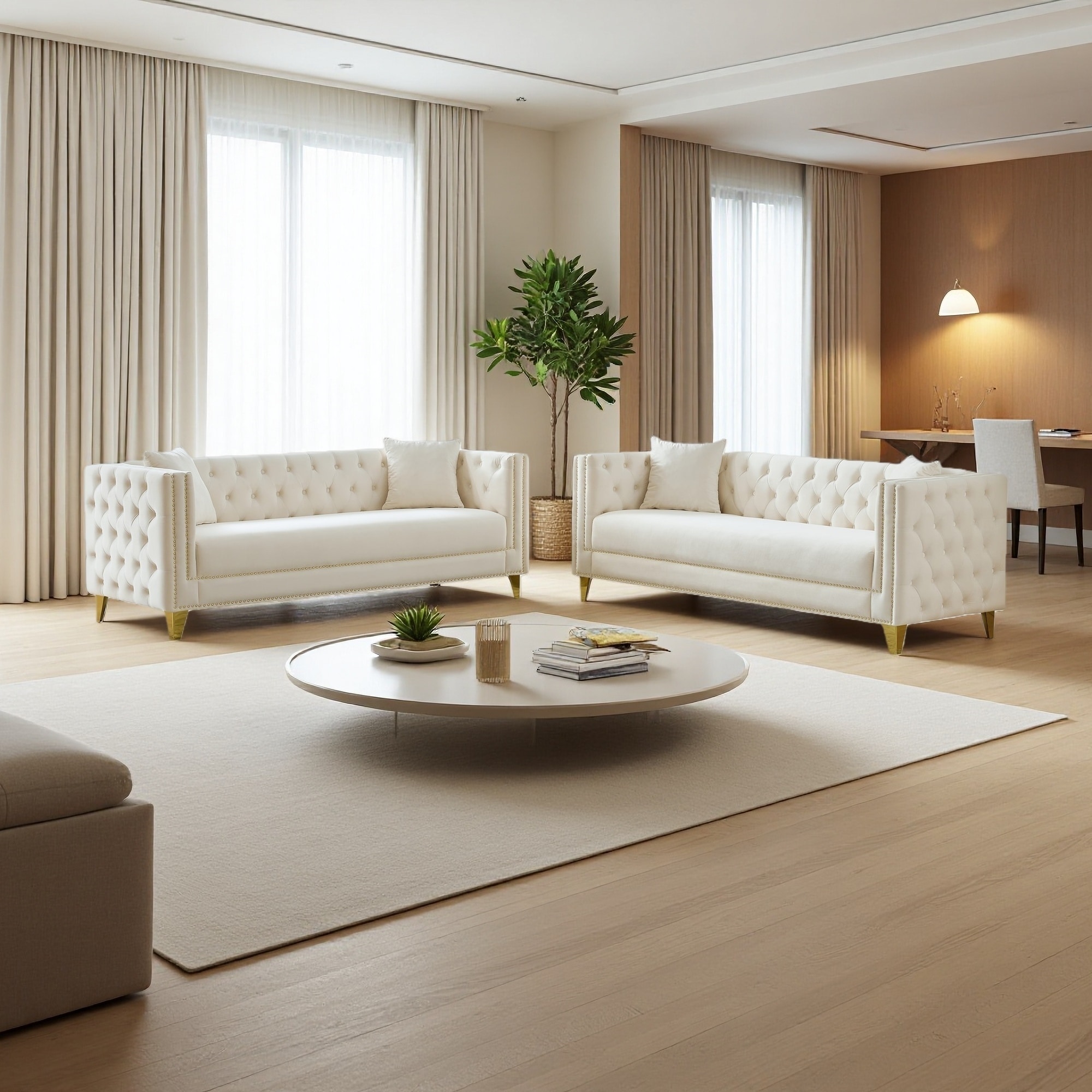 Velvet Chesterfield Sofa Set with Deep Seat, Button Tufting and Nailhead Trim (6-Seater)