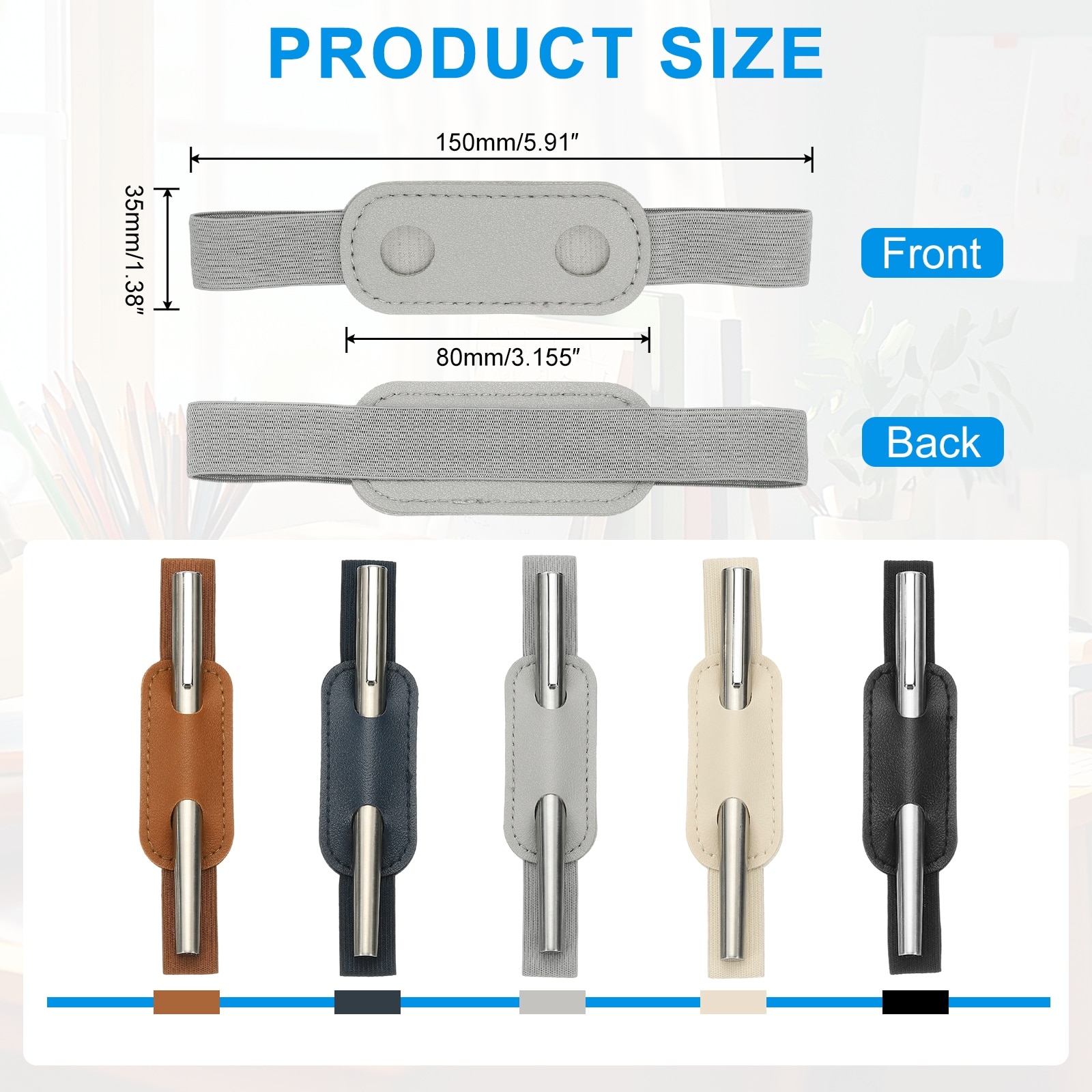 Adjustable Pen Loop Holder for Notebook, PU Leather Pen Holder Pencil Sleeve Elastic Strap Band Designed for Calendars