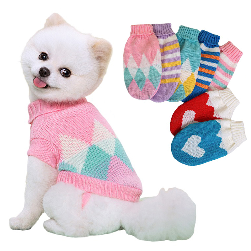 "Cozy Winter Pet Clothes: Puppy Cat Sweater For Small Dogs & French Bulldogs Color: Stripe Purple L