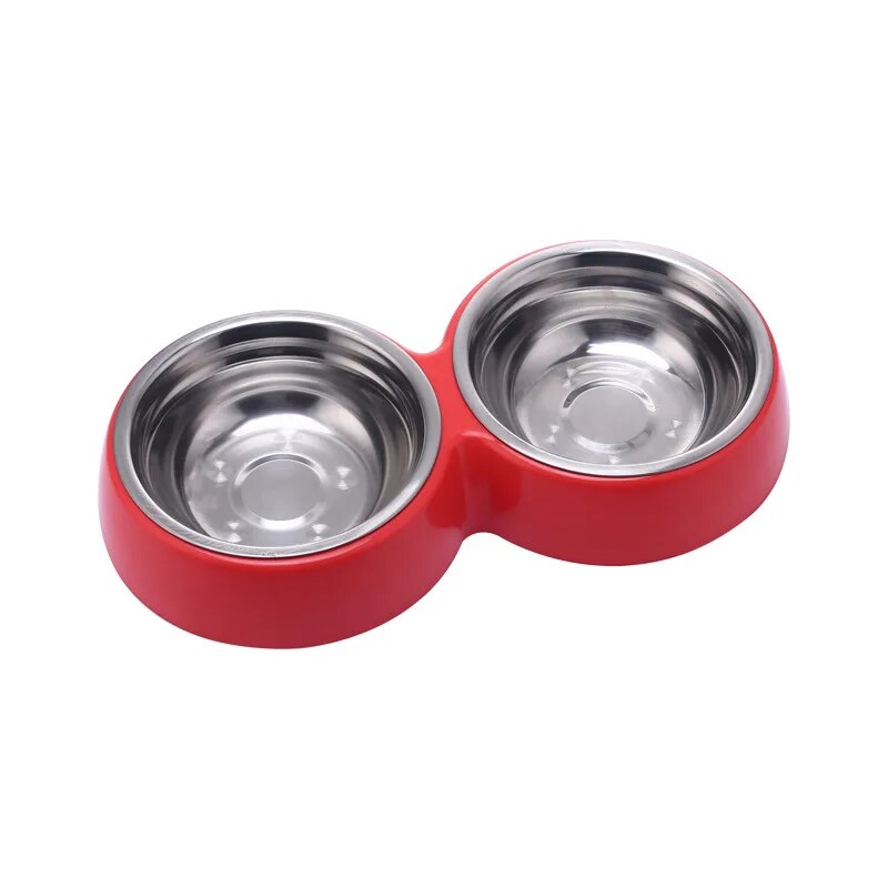 Stainless Steel Double Pet Food Bowl: Feeding & Drinking red2