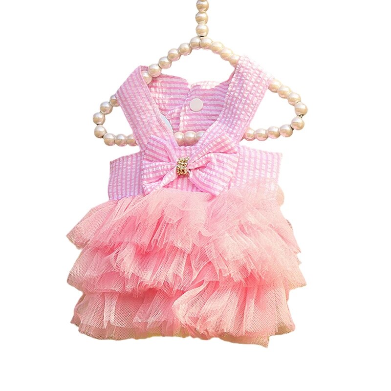 Summer Pet Clothes: Cat Puppy Princess Dress With Bow Striped Plaid Dresses For Cats, Kittens, Rabbits XL 1