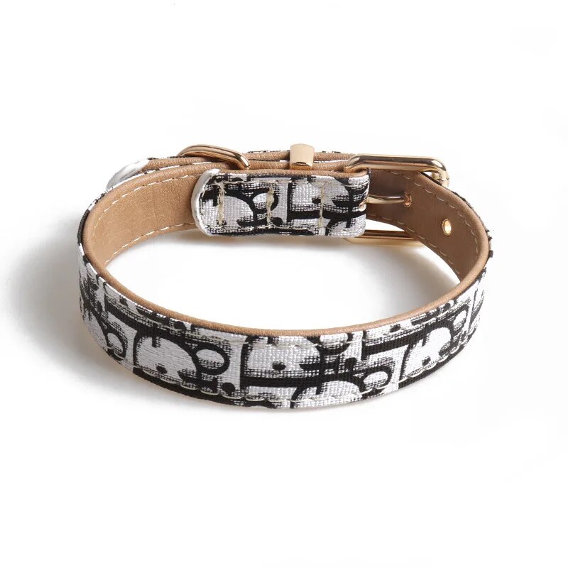 PU Leather Print Dog Collar: All Seasons, Metal Buckle Pet Straps & Leash Set Collar 2.0x40cm 2