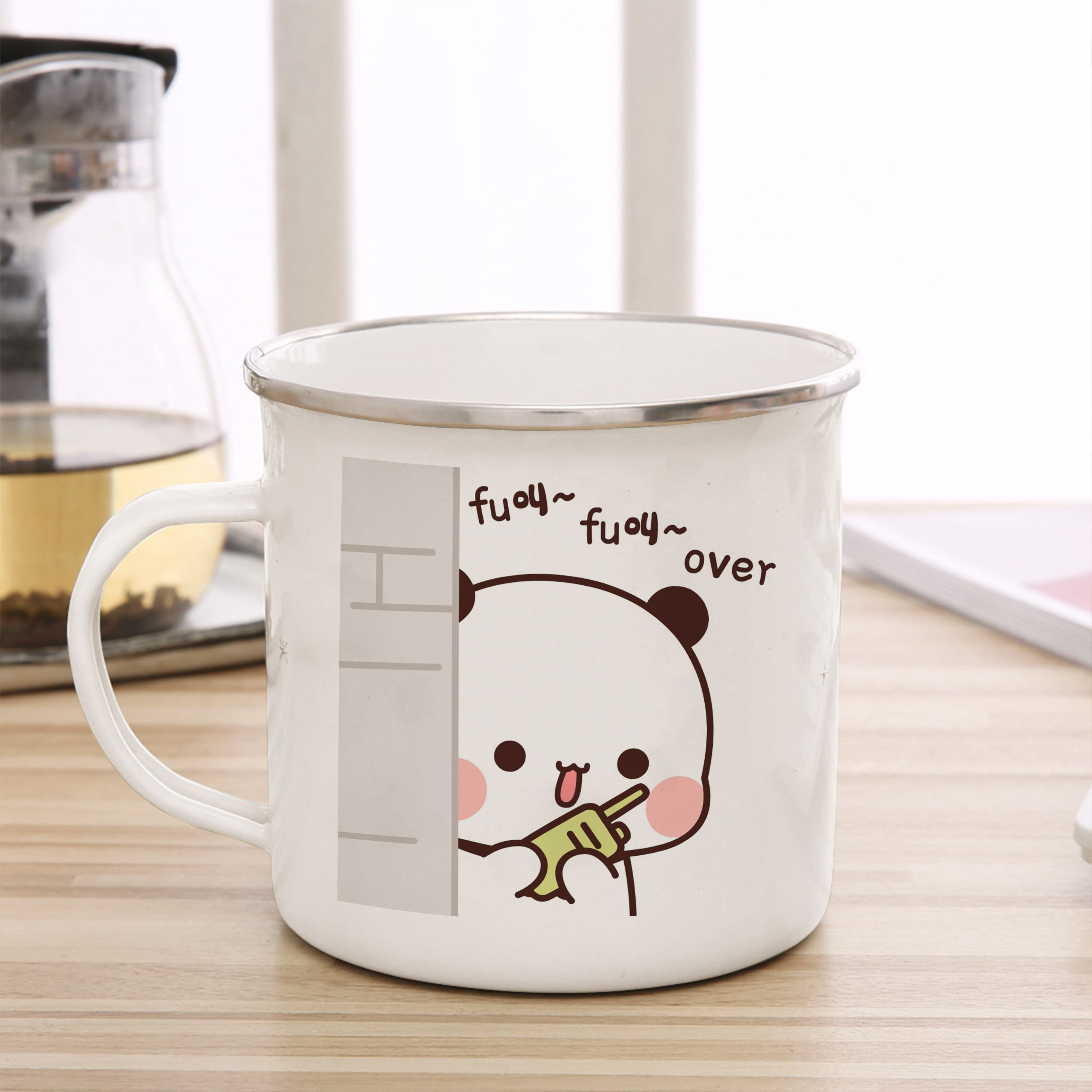 Adorable Cartoon Mocha Bear Boob & Doodle Enamel Cup: Perfect 11oz Coffee Tea Mug For Couples! 3