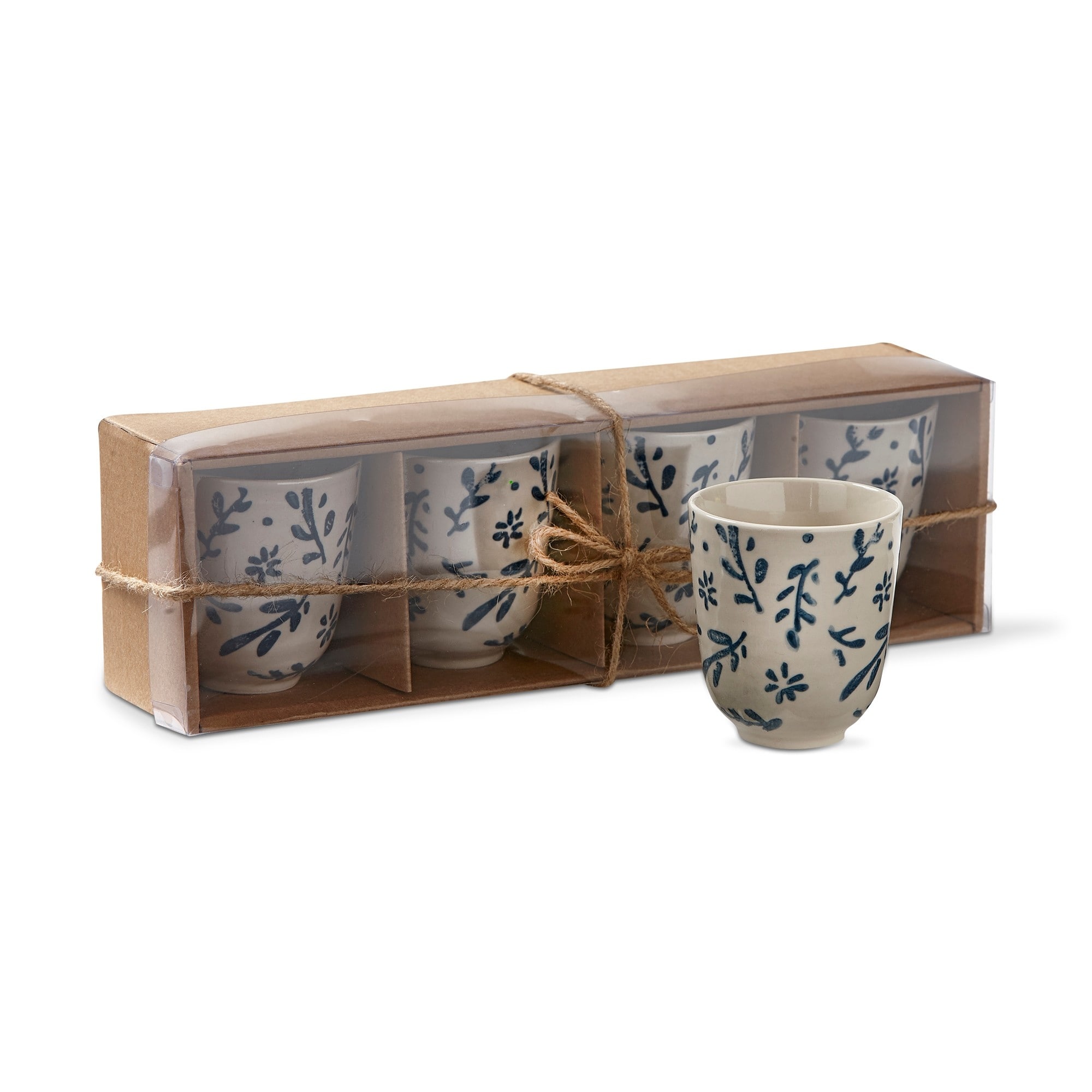 American Rustic Blue and Beige Stoneware Tea Cup Set Of 4, 6 oz.