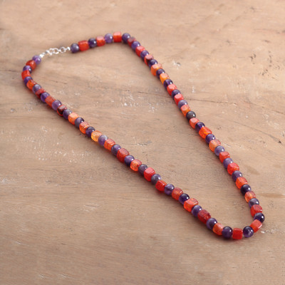 Women's Round Genuine Jasper And Simulated Turquoise Silvertone Flower Necklace 34-Inch by PalmBeach Jewelry in Blue Brown