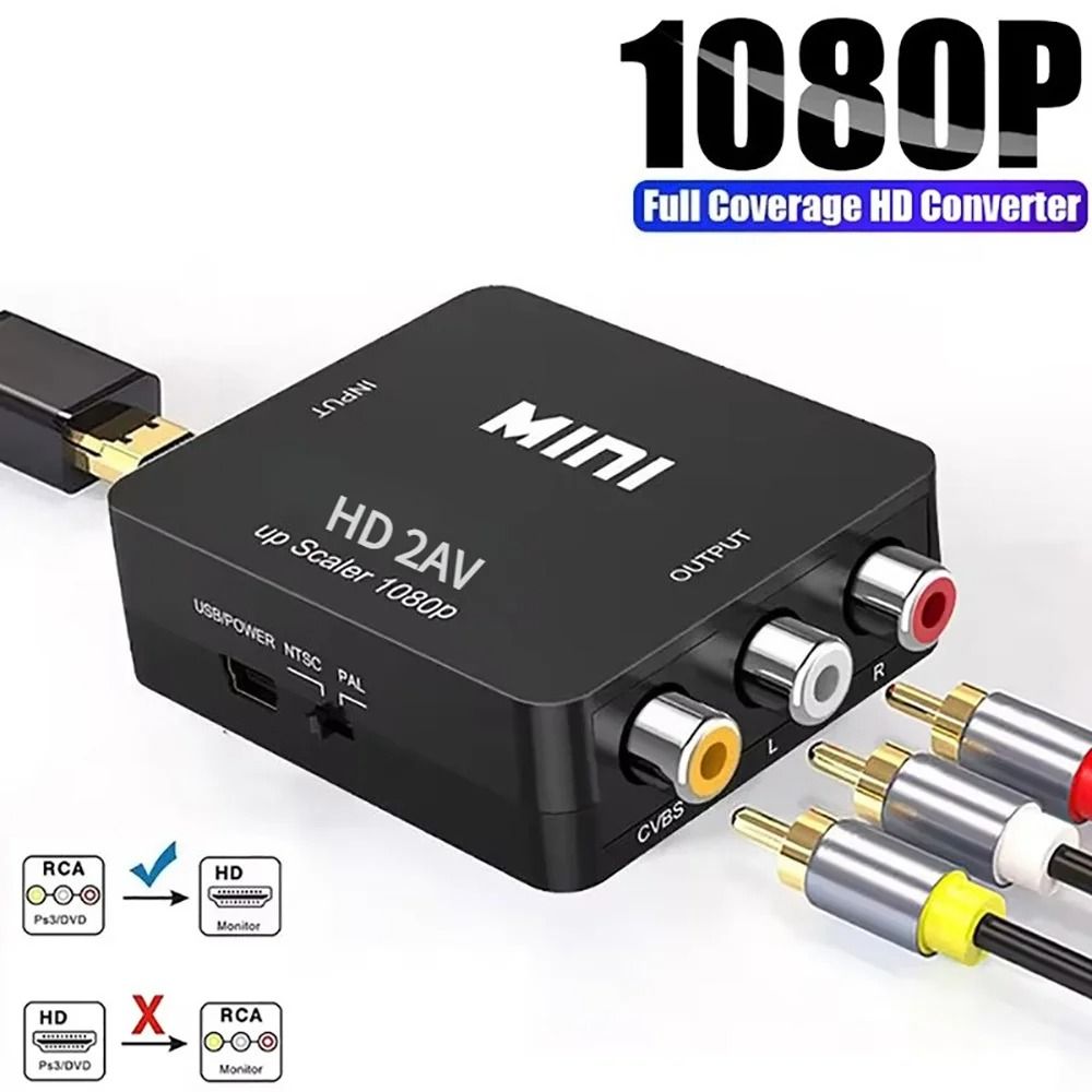 RCA To HDMI Scaler Converter Composite Video Adapter For PC HDTV Projector hd To Av Black