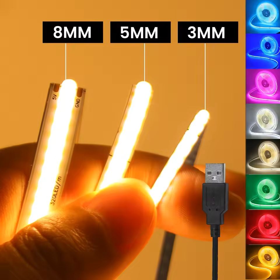 UltraSlim USB 5 V COB LED Strip Light Multi Colour Flexible Ribbon For TV Back Light & Home Decor yellow width 3mm 2m