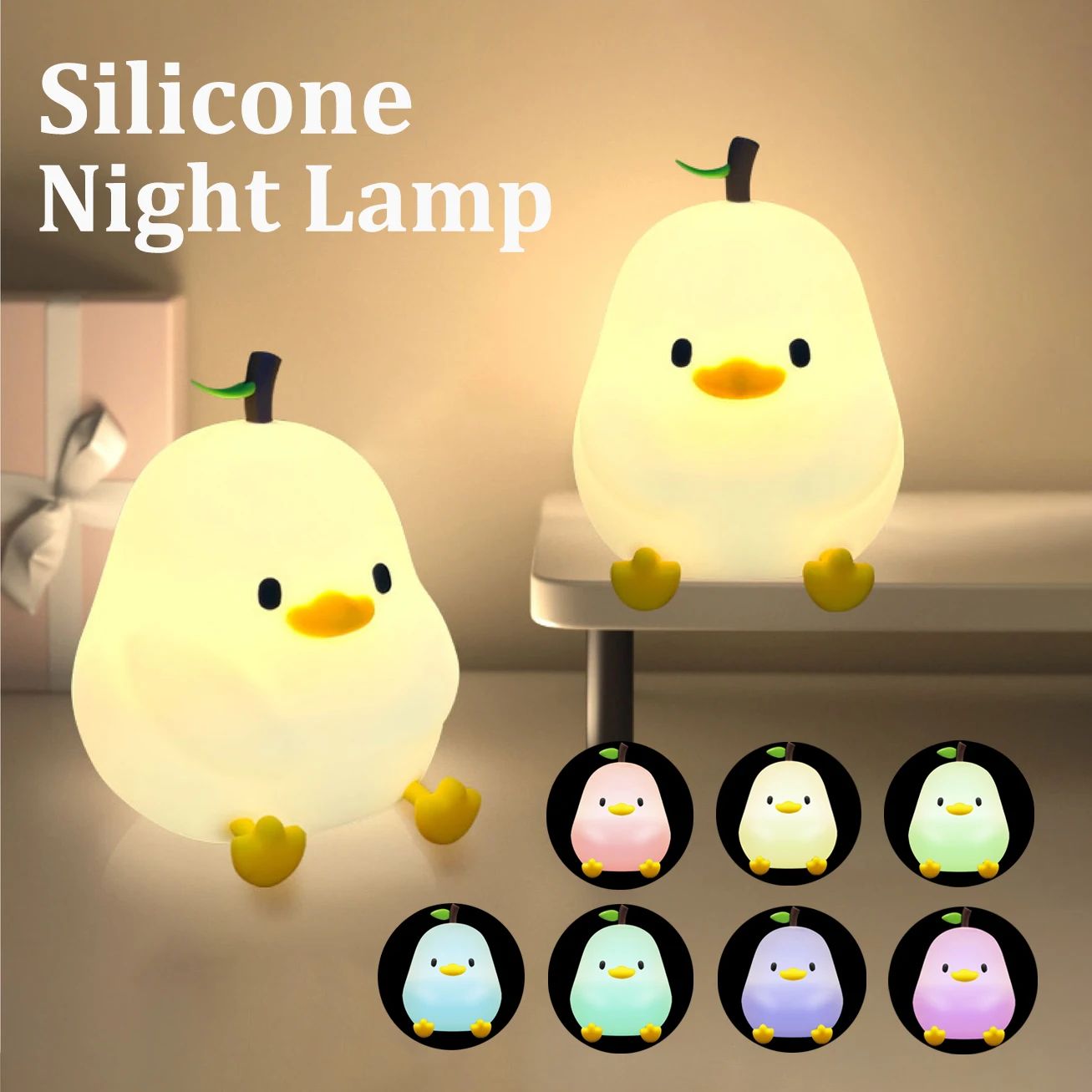 Cute Pear Silicone Night Light Touch Control Dimmable Color Changing Lamp hamster