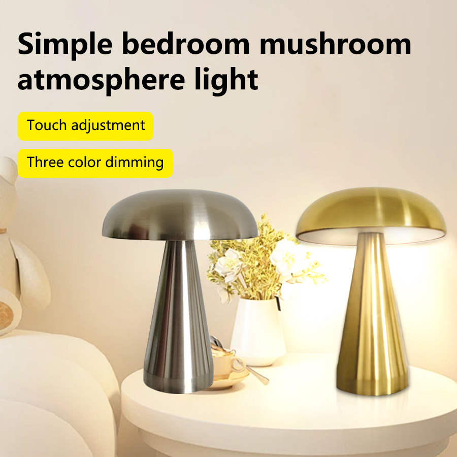 Rechargeable Mushroom Night Light, Dimmable Table Lamp, Warm White Reading Light For Bedroom, Nursery, Desk, Hotel Decor gold