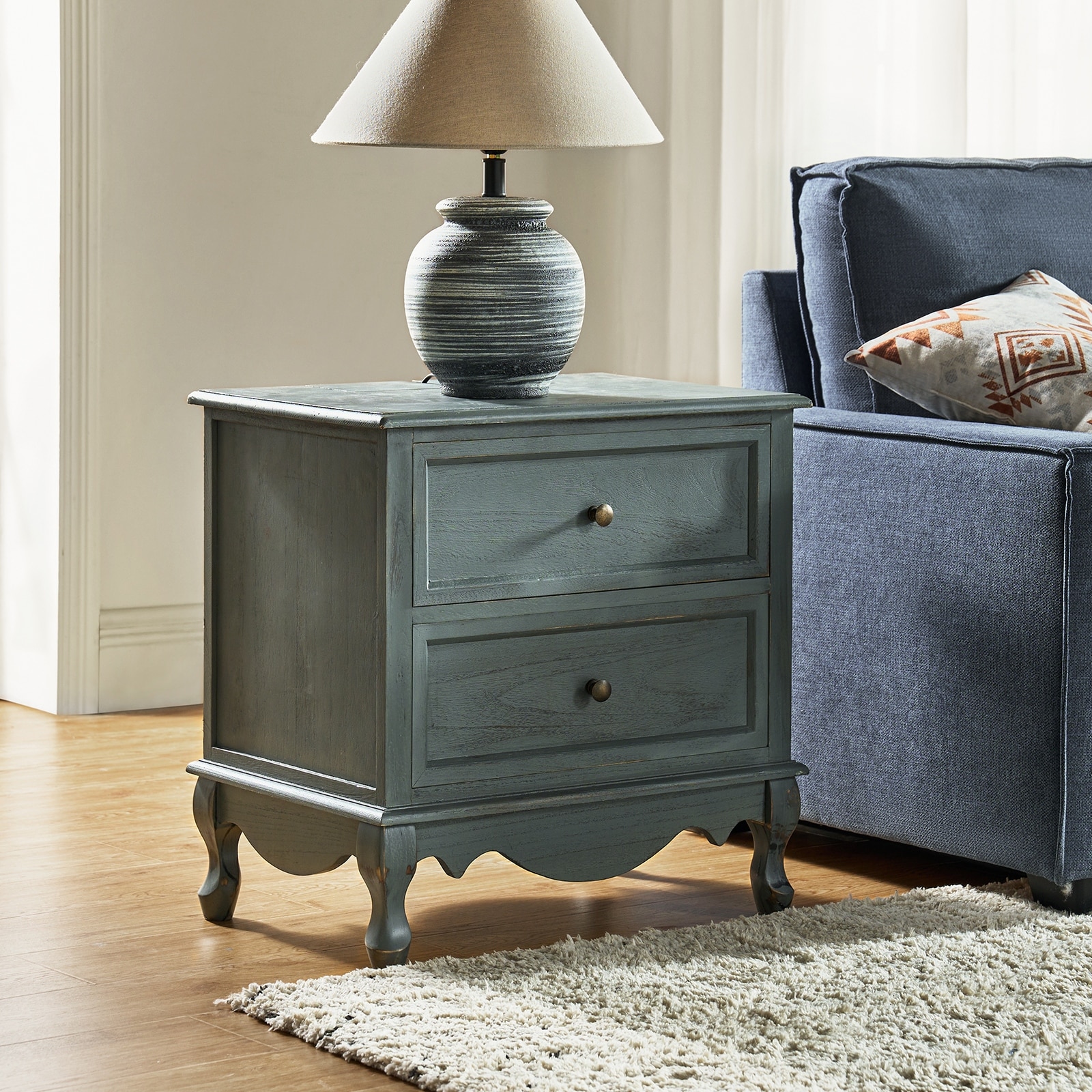 Rowena 2-Drawer Pine Wood Nightstand, Light Warm Wash