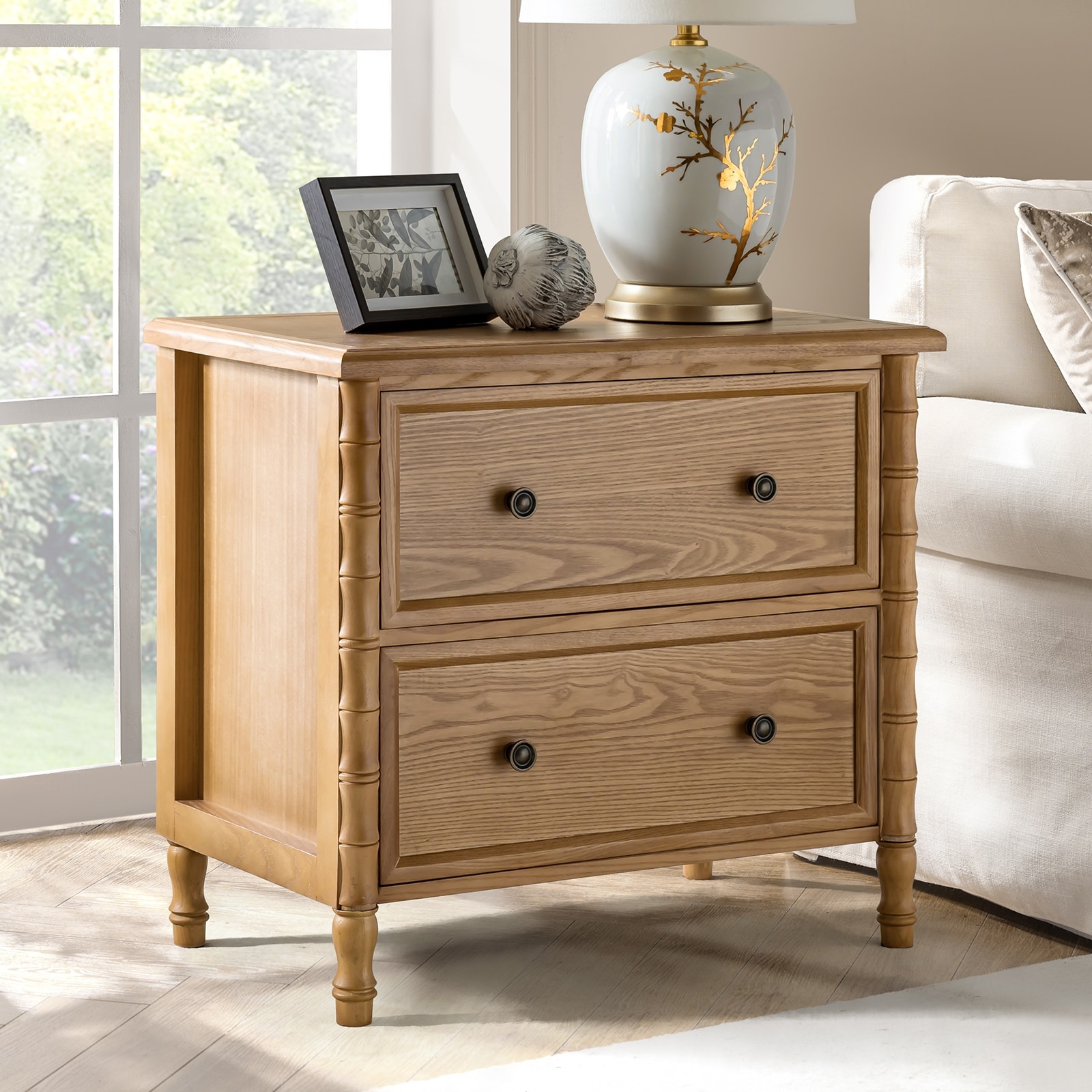 Carol Transitional Curved 26"Tall 2-Drawer End Table By HULALA HOME